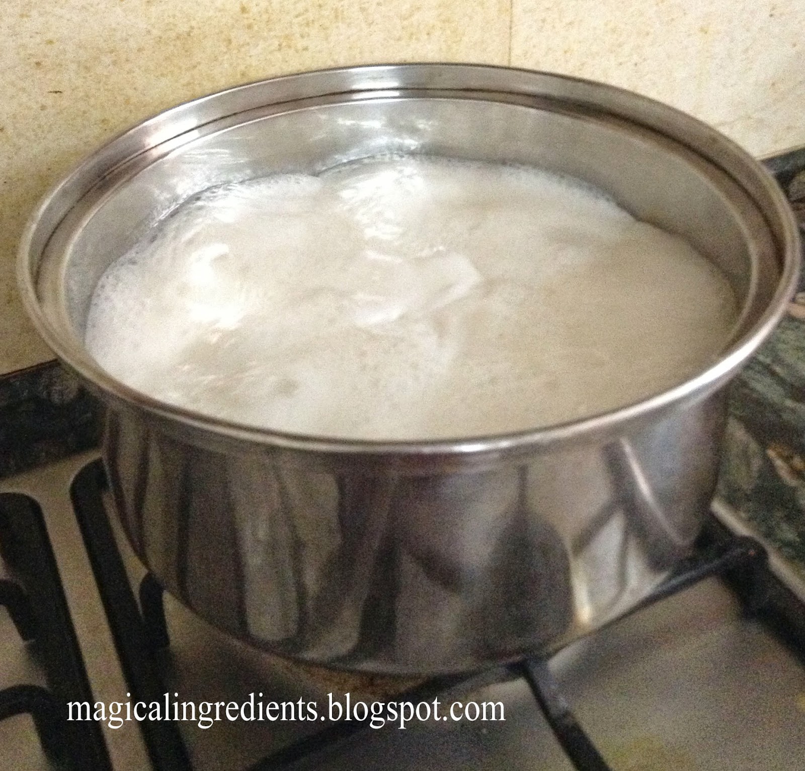 • Once you keep the third extracted milk with sugar on the stove, try and clean the grinder immediately, or else cleaning the sticky mass is very very hard.