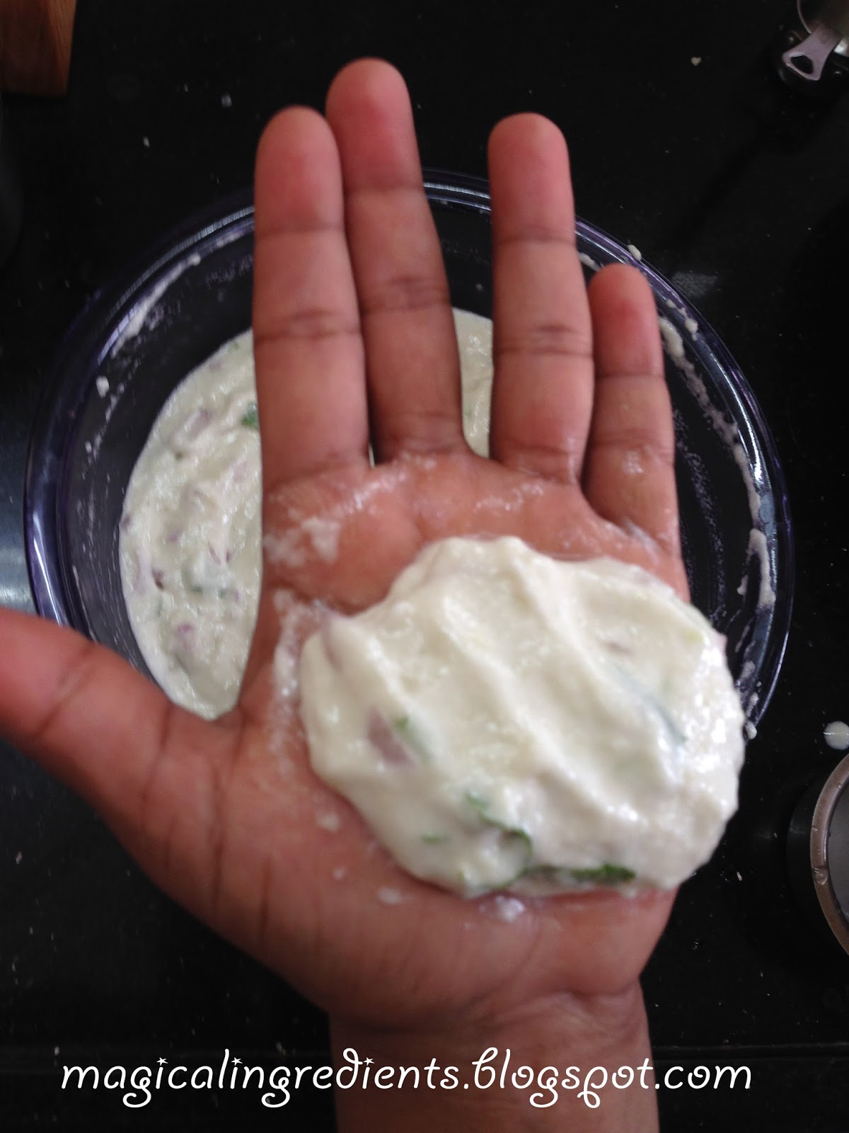 10. I usually grind chopped green chillies along with the urad dhal, so that the kids do not get those chillies. You can add it to the ground batter too.