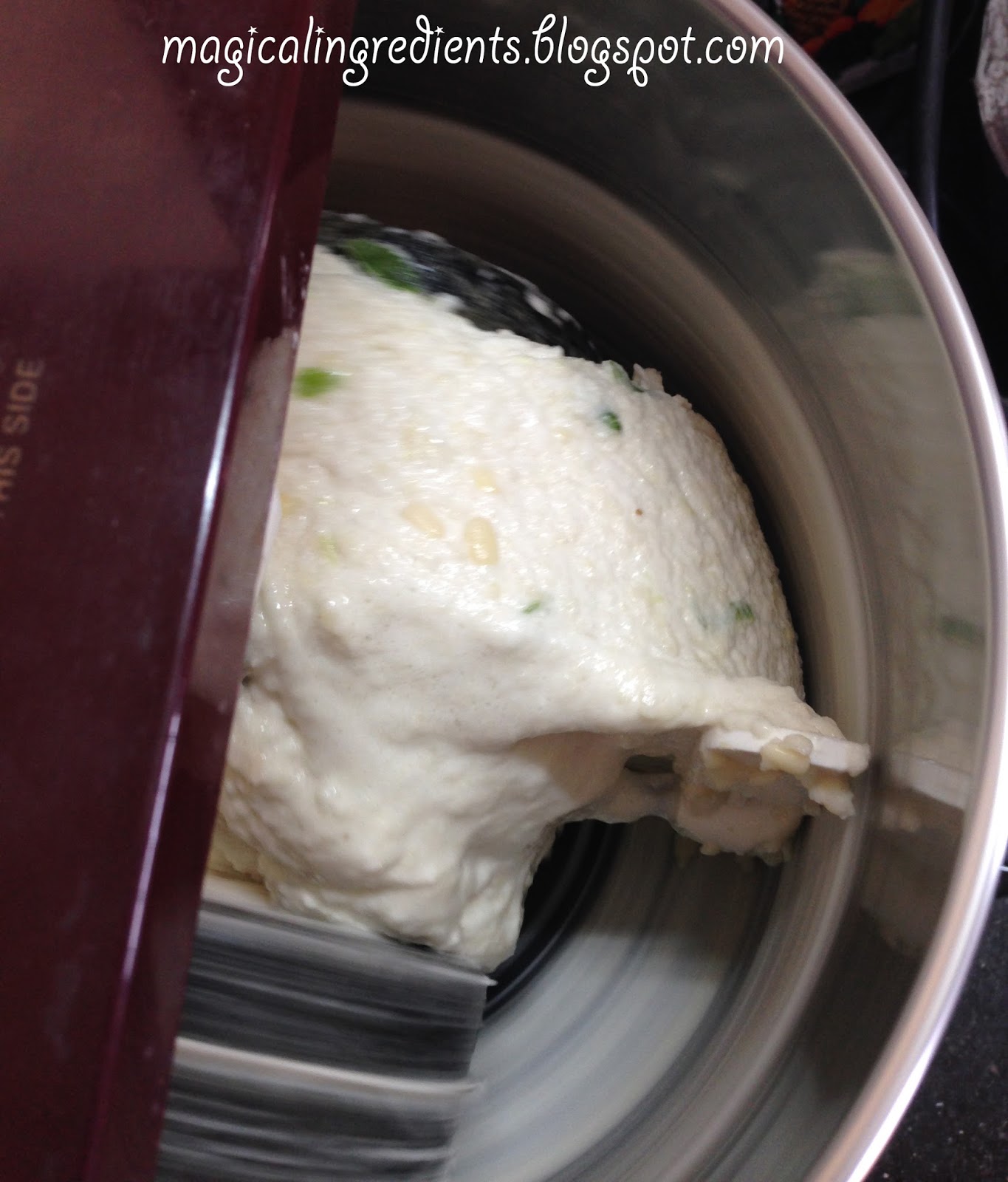 4. Do not pour water in one stretch to grind the batter. It is advisable to sprinkle water during grinding. The whole grinding process would be completed in about 15 to 20 minutes. So keep an eye on the grinder. Scrape the sides now and then and sprinkle water.