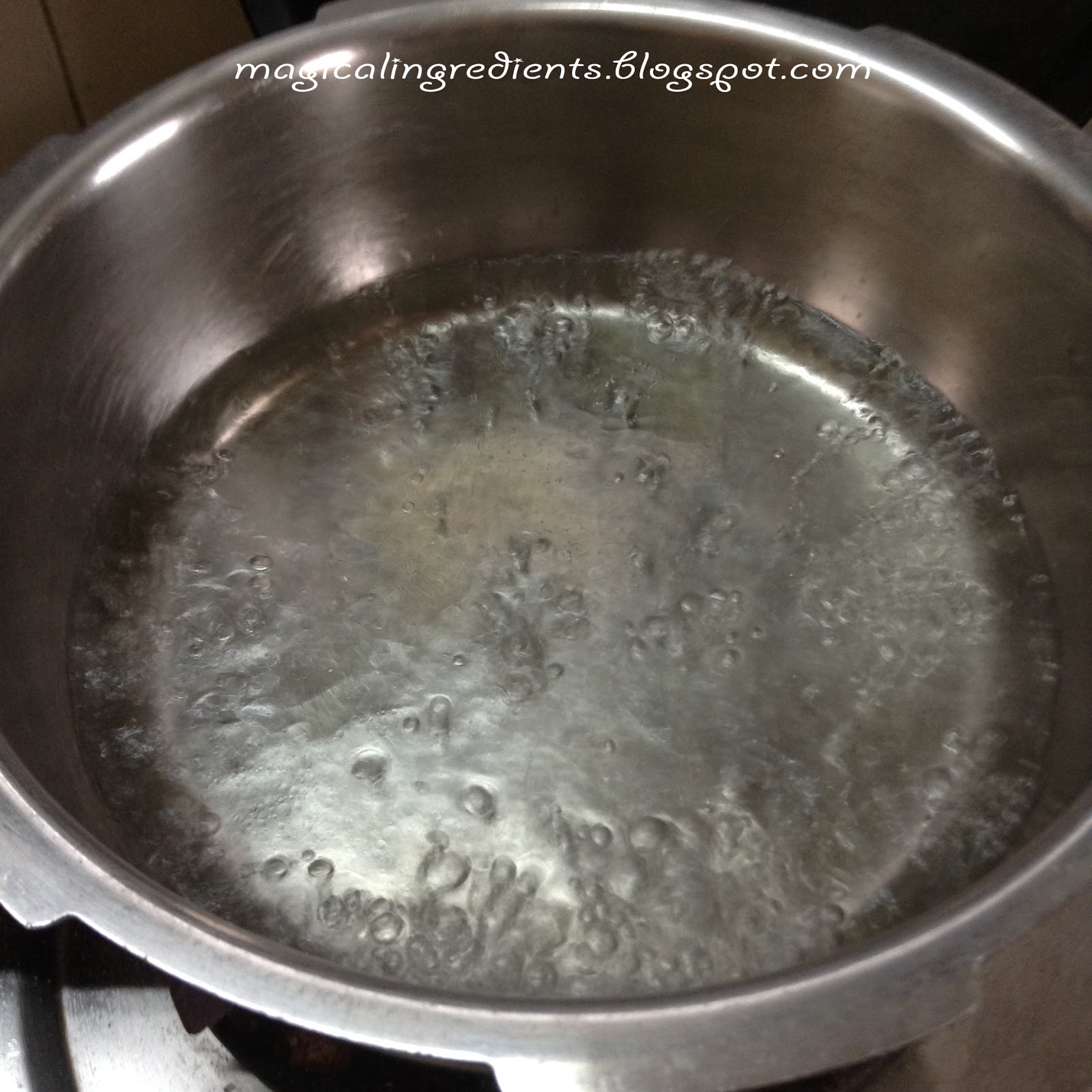 In a heavy bottom pot, boil water. When it starts boiling add 1 tbsp oil and a little salt.