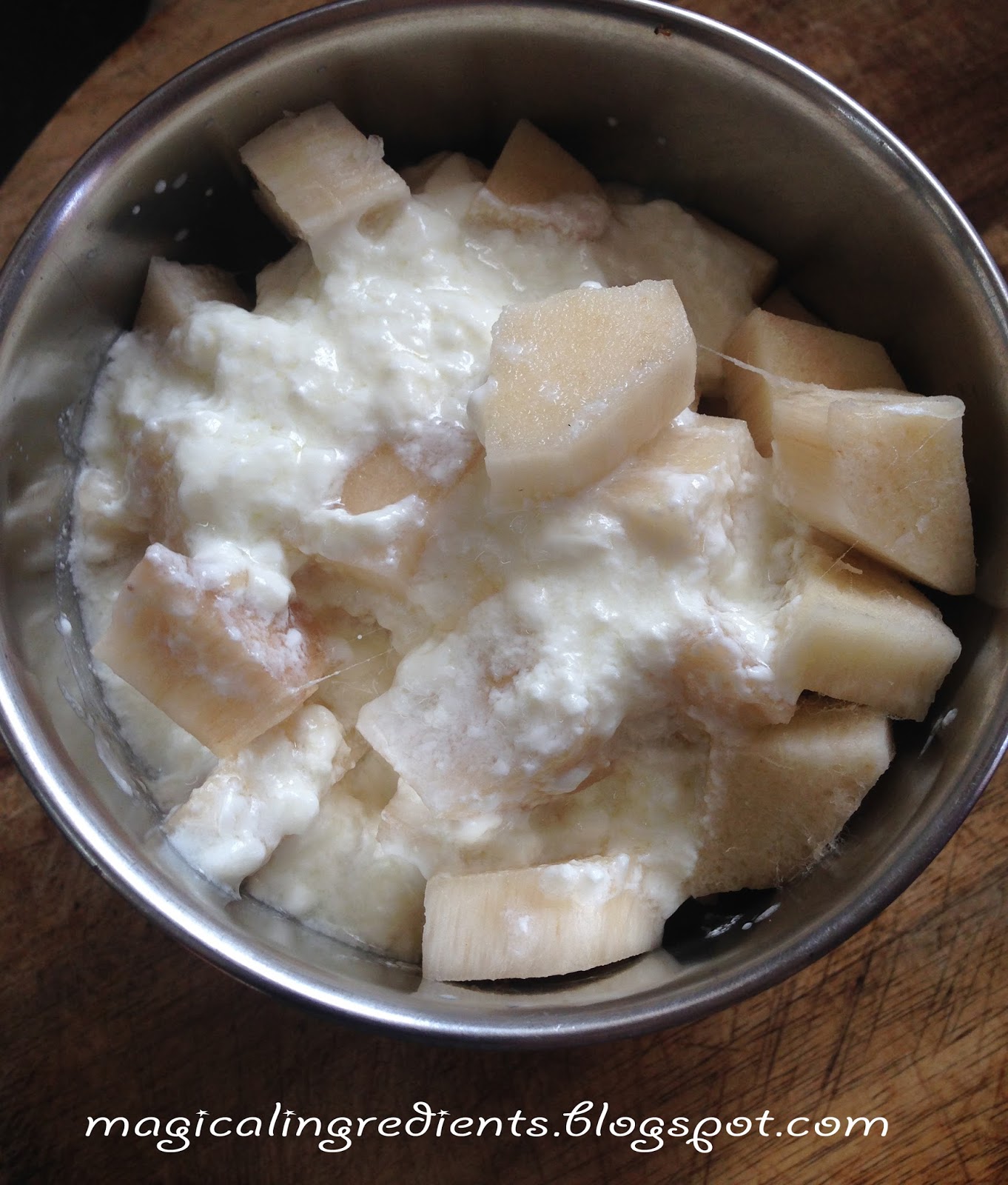 Put the chunks and yogurt into your blender and blend to a puree consistency.