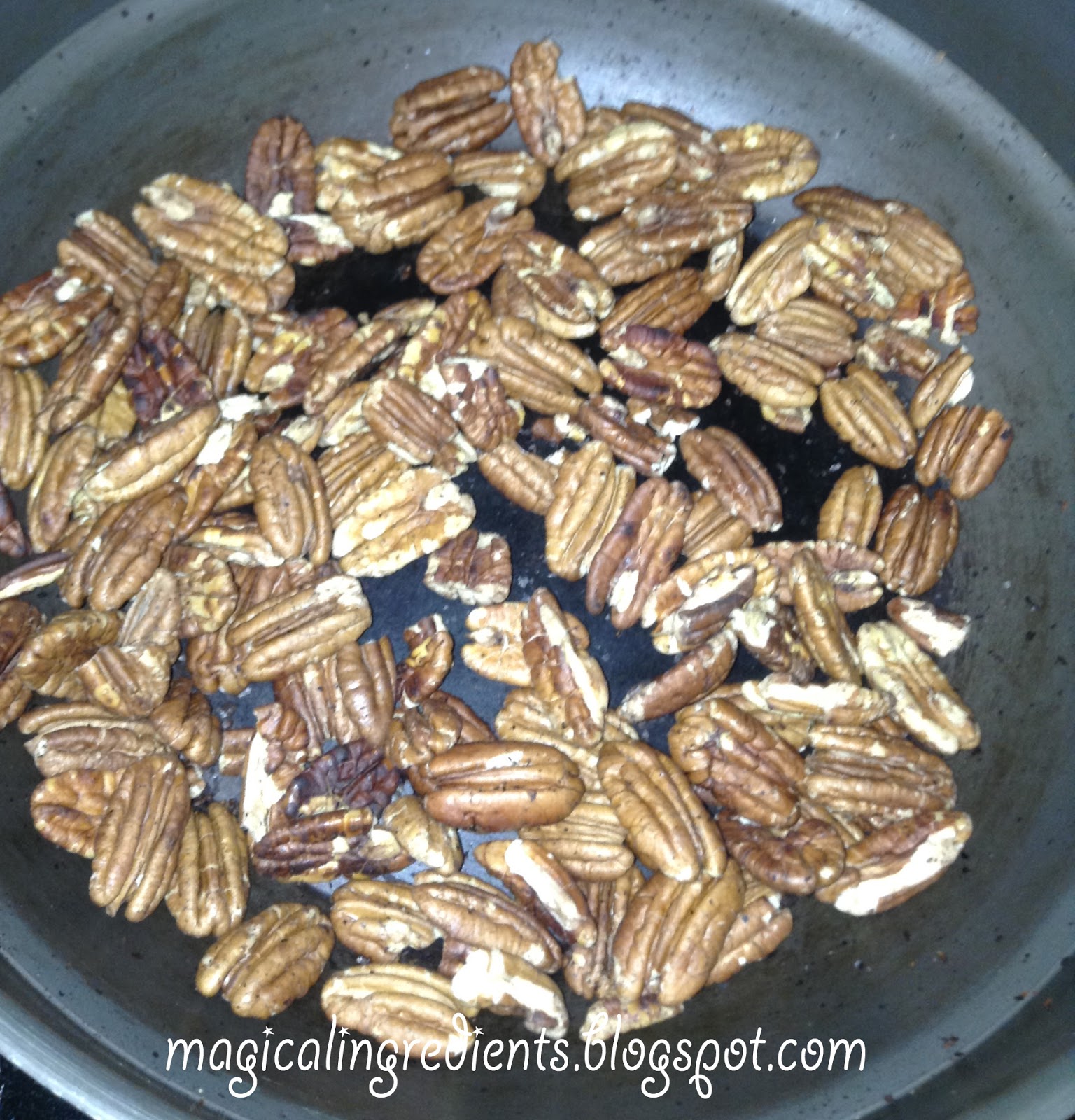 Toast the pecan for about 8 - 10 mins till it is crisp. Once it is cool, chop into small pieces.