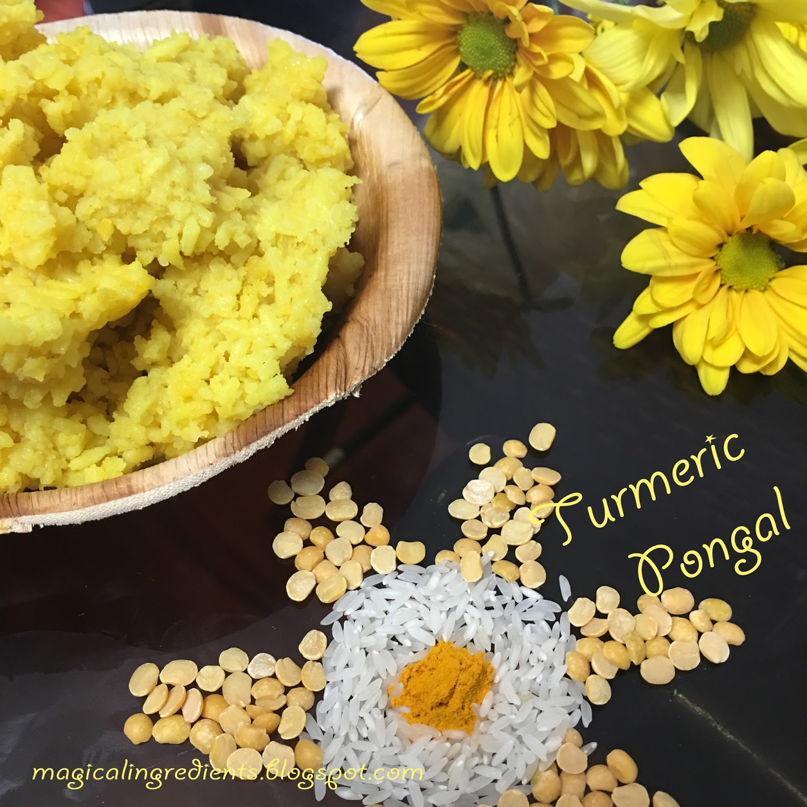 Turmeric has been used for a very long time in Indian cuisine. No meal is cooked without turmeric, at least a pinch of it is used. It has a unique spot in our culture. It is offered to the ladies when they come to our home, right before we do any pooja we make small tiny Ganesha out of turmeric and start our prayers. It is used in Ayurveda as well as in many simple home remedies. The rhizome which is mainly used in powdered form, has tons of health benefits right from antiseptic, to treat cold, cough, actually, the list can go very long. Nowadays we can find turmeric capsules and recent research is carried out for its benefit in treating cancer. No wonder, our great forefathers used this in everyday cooking to lead a hale and healthy life. Last Friday, was an auspicious day of the Thai month for us, made this pongal and I am posting the recipe here for you to try.