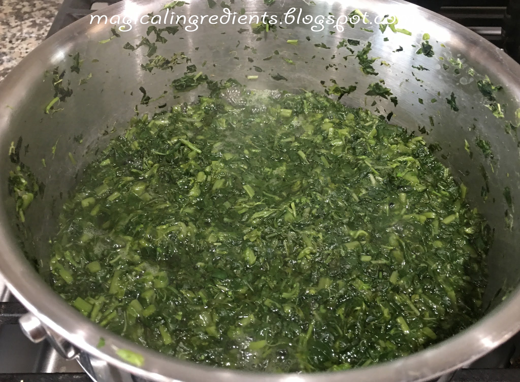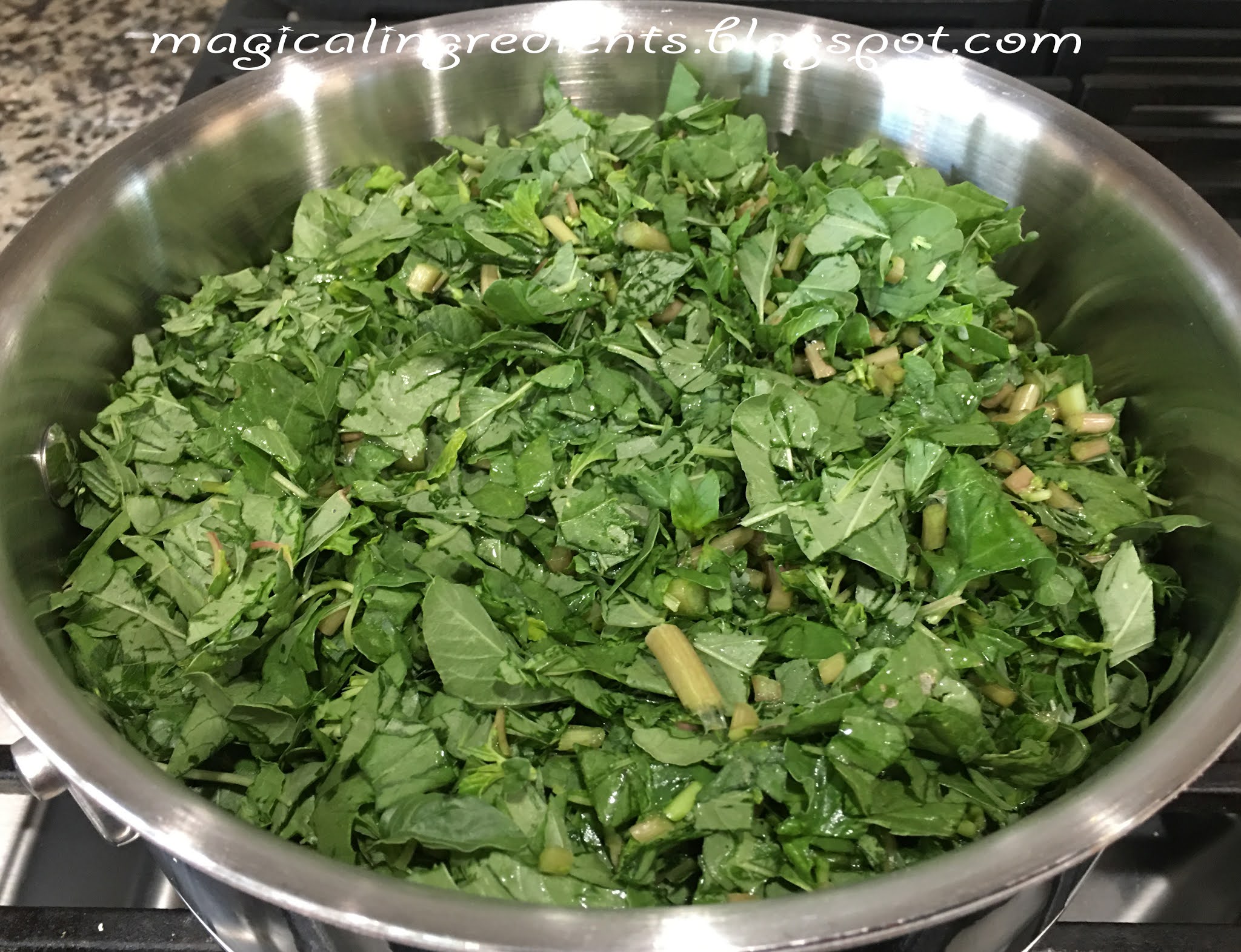 In a heavy bottom saucepot, add the chopped amaranth leaves. Add water and cook. In about 5-7 minutes, the amaranth leaves would have cooked.