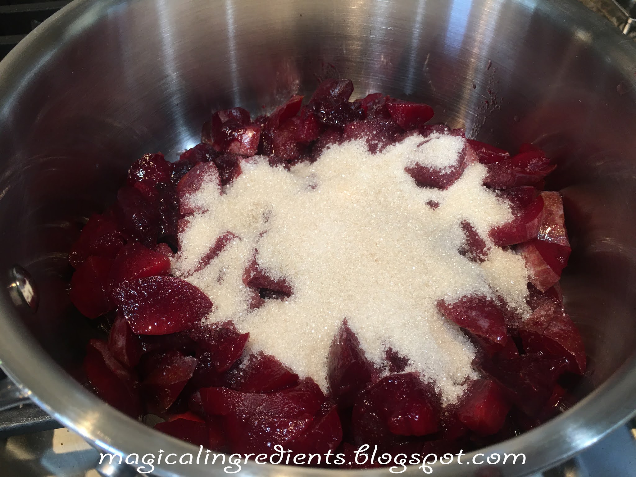 The purple plum from my friend's garden is one thing that I would for. They are so sweet when they are ripe as if they are dipped in sugar or honey. This year too, I got a box full. After enjoying the fresh fruits for a few days, my mind was set on making the jam for two reasons. One, the vibrant purple color of the fruit was pushing me to make this jam. The second reason being, my interest in making jams or preserves with a nominal amount of sugar. I don't want the sugar-loaded jam. Also, there is no need to remove the skin of the plums. Actually, the skin helps in getting the perfect gel consistency of the jam.