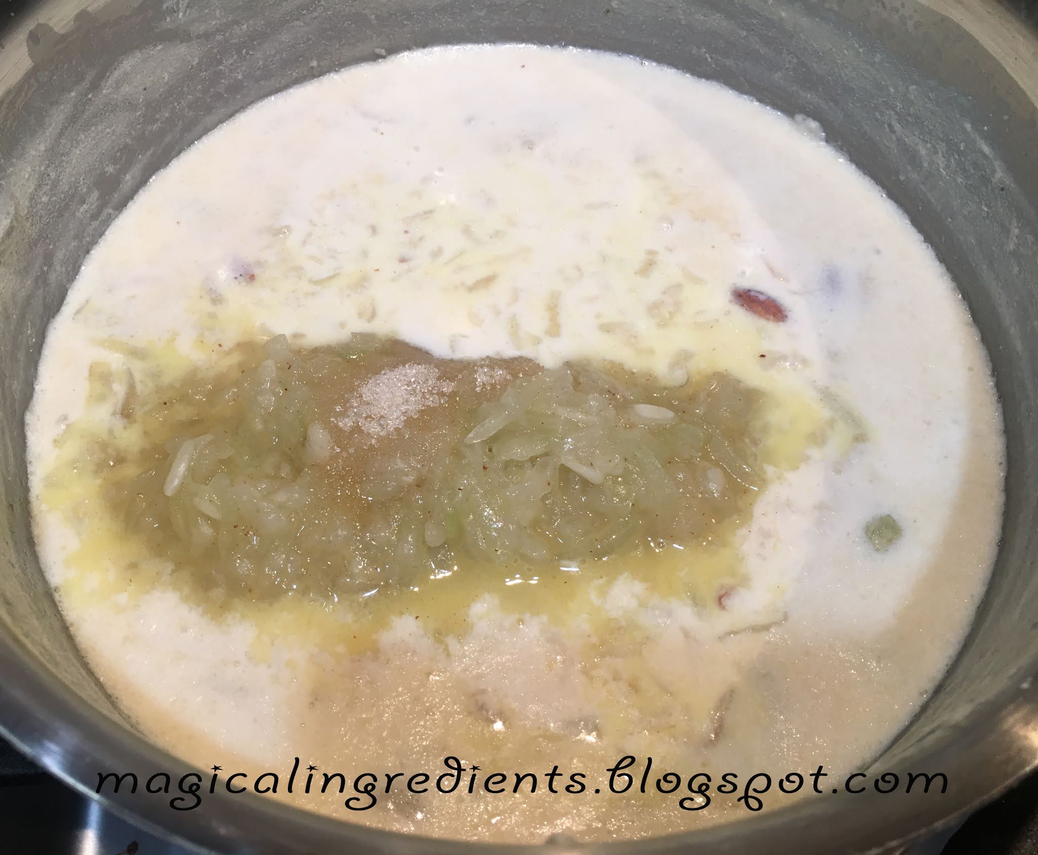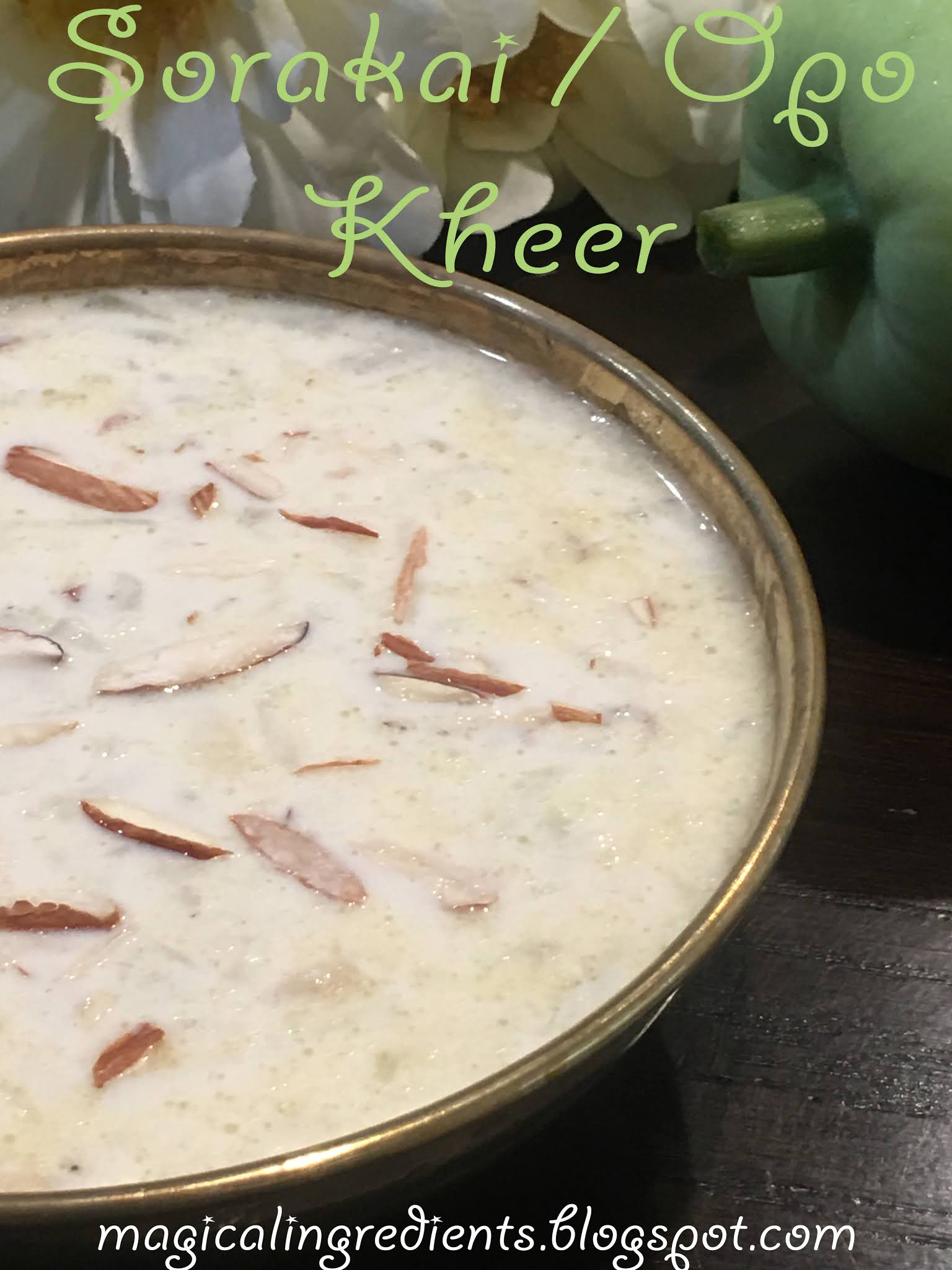 With the bottle gourds growing in your garden, you have fresh ones at your disposal. This helps you to plan effectively what you can make and plan well ahead. But, sometimes, even without planning you can just pick one, and start cooking when your heart and tummy is craving for somethings. Bottle gourds are 95% water and doesn't have a strong taste. So it is easy to utilize them in sweet as well as savory recipes. Having made a lot of savory ones, wanted to make a dessert, and kheer comes to my mind immediately. The kheer is a very simple yet creamy dessert made by reducing milk and sweetening it. Grains or veggies can also be added to milk to make flavorful varieties. Bottle gourd kheer tasted great like carrot kheer (one of my favorites). I used the thick shredded ones, so that it will retain a little bit of shape after cooking. The addition of almond when reducing milk, makes it a little soft, and the soft bite along with the bottle gourd tastes delicious. In simple words, this simple kheer is one of the greatest tasting kheer. It can be served warm or chilled. In both ways, it is yum, yum, yum!