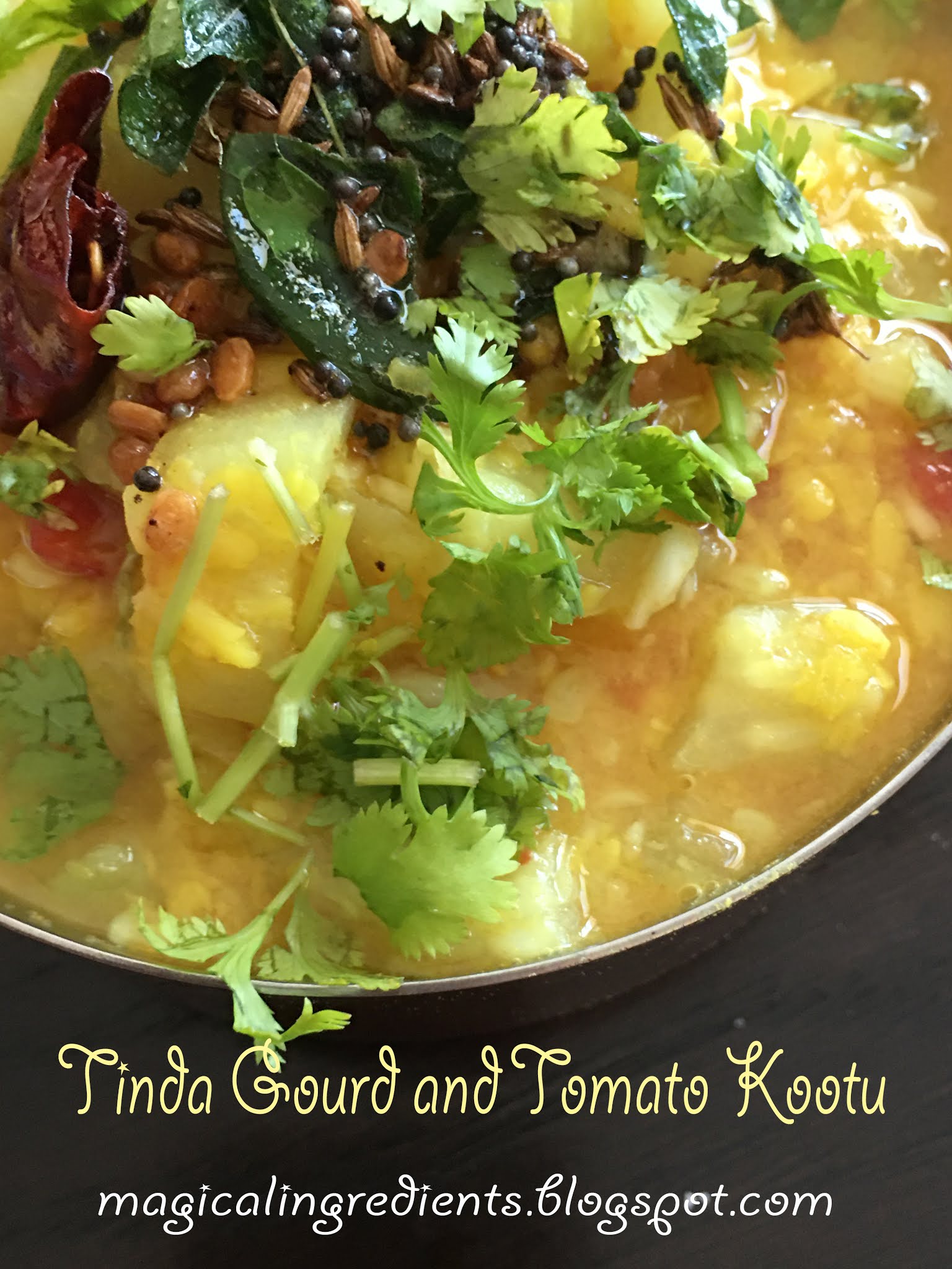 Add the gourds and tomatoes. Add water if necessary, maybe a quarter cup, and continue cooking. In about 8 min, the gourds would have cooked and become tender bur will have a little crunch.