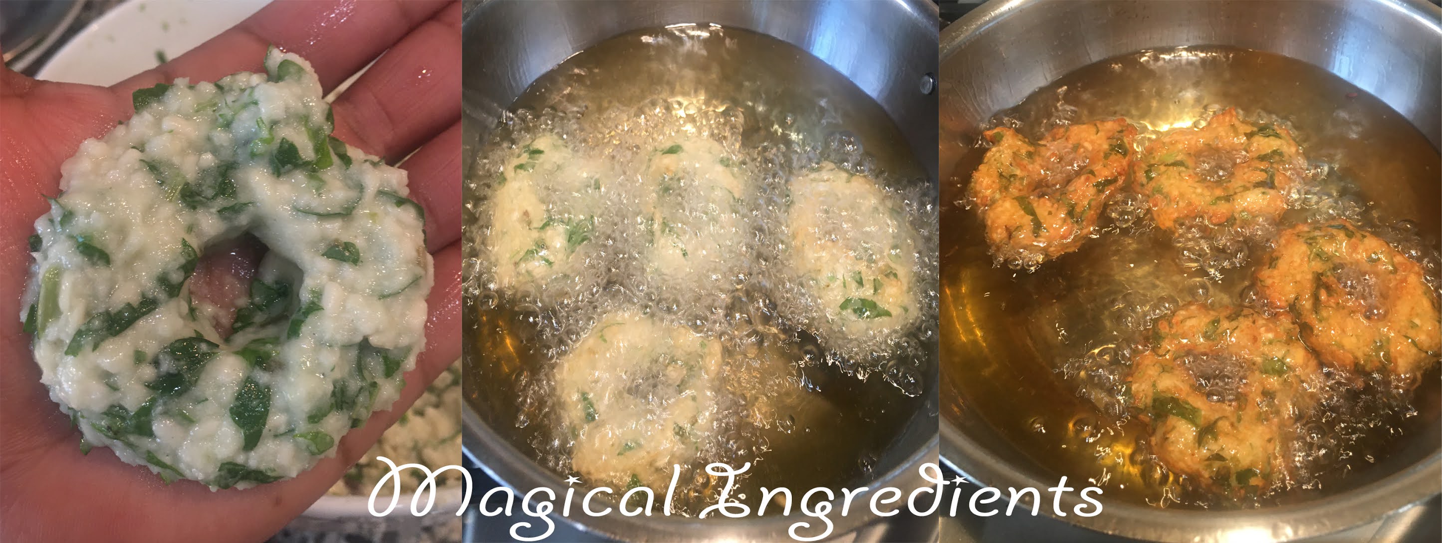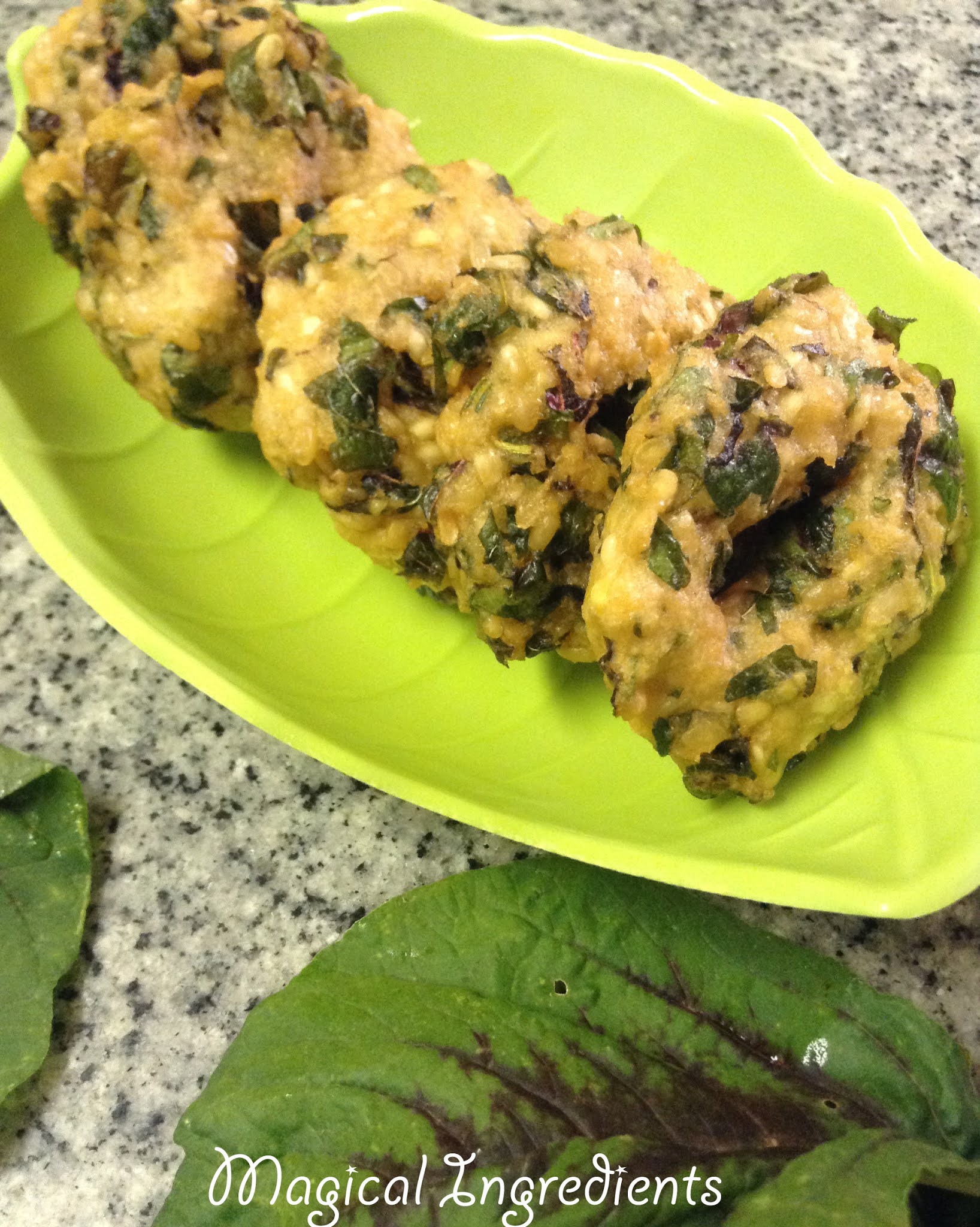 I have made these vada with the red/purple and green leaf amaranth and that tastes perfect too.