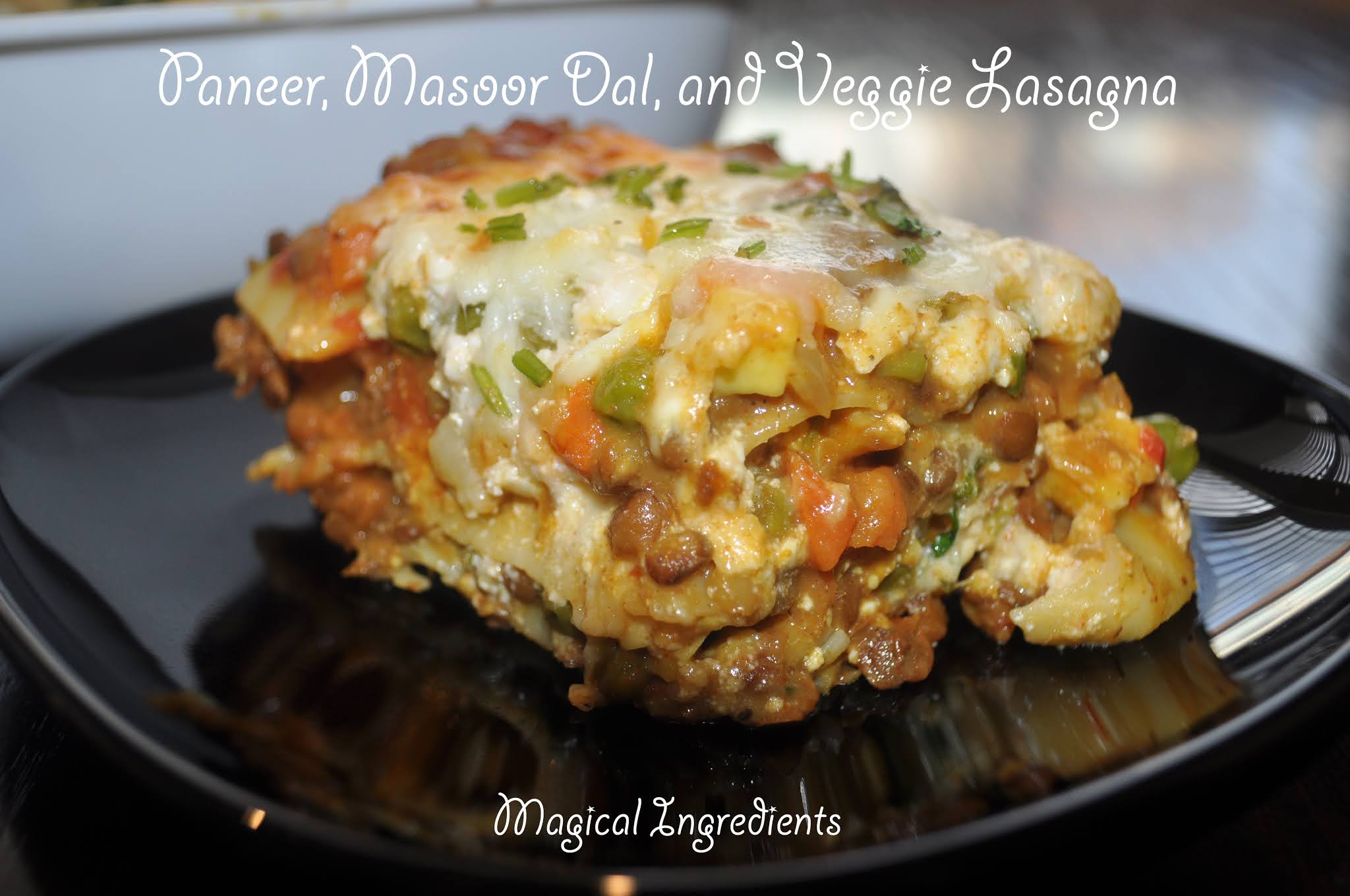 The only change I made in my original masoor dal lasagna is the addition of more paneer. I added more paneer as we are paneer lovers and kids want more of it. Also, I have used fresh paneer, grated paneer, and cottage cheese (small curd, Daisy brand). Fresh paneer is very much similar to ricotta cheese and hence adding it would result in a great tasty lasagna. These three types of paneer go in the cheese spread between layers and the veggies have chunks of paneer making it a "paneerilicious" lasagna. I know - it is addictive. And, the addition makes it very perfect for me to post for the Paneer Recipes event in Blogging Marathon #119 hosted by Srivalli. I have used gluten free corn and rice oven ready lasagna sheets. Oven ready ones need not be cooked prior to baking. Feel free to use any type of sheets, if needed cook them according to the directions and further continue. I have used less of tomato sauce, just to keep tha dal flavor more pronounced. When it was baking, the entire home was filled with the masoor dal makhni, paneer, veggies, and cheese. It is similar to eating cheesy lasagna but desi style, with dal, curry and panner. As I said, paneerilicious comfort food. You get the same comfort just like when you have a bowl of rice and dal.
