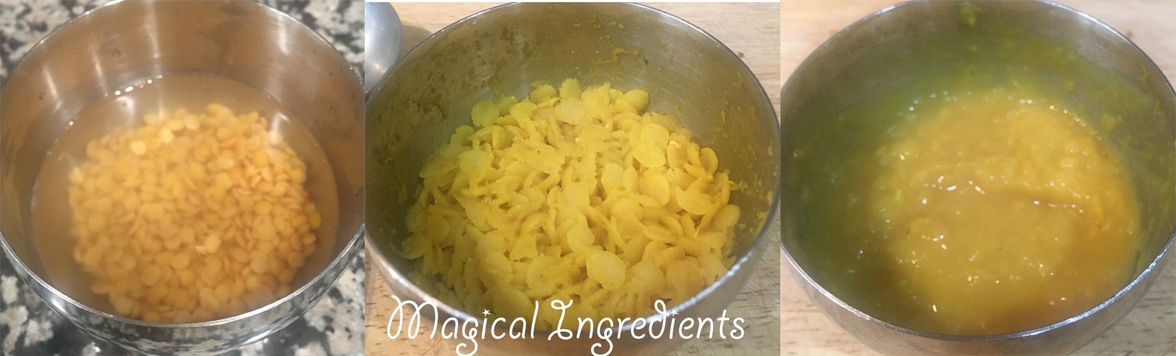 Pressure cook the dal with a pinch of turmeric, mash, and keep aside.