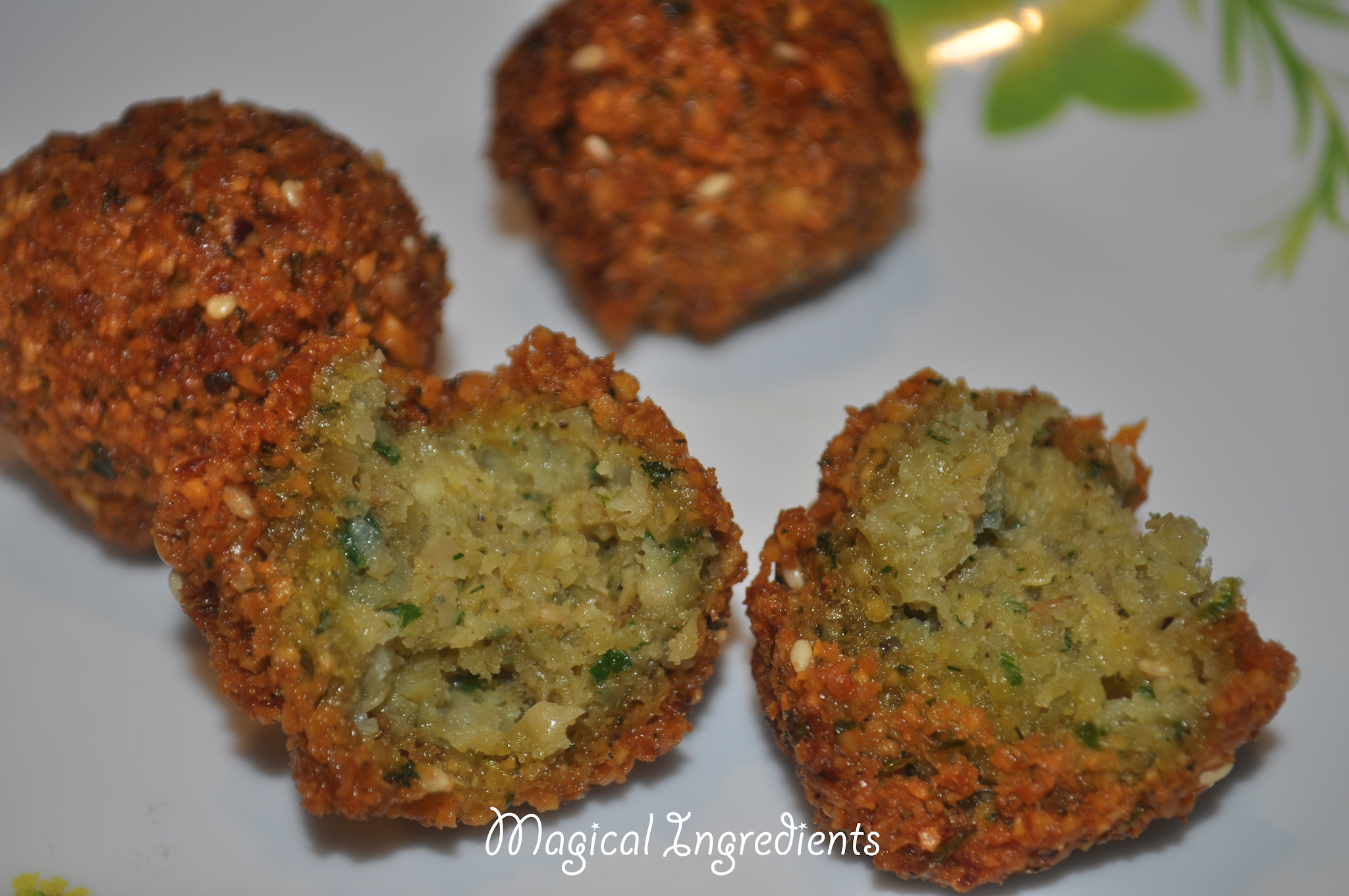 We often make this in our home. We order this in food stalls when we go to the farmer's market. This can be compared to the south Indian masala vada which is made with split garbanzos or canna dhal. The Mediterranean version is made with whole garbanzos. Both of them have their local touch which makes both equally special. Though we love masala vada, one of us is allergic to channa dal and hence we always look for various substitutions and this falafel fits right in place. Adding a pinch of baking soda is optional. If you are adding it, do it just before frying. Also, if you are planning to make them in bigger quantities, mix them with baking soda in smaller batches and fry immediately.