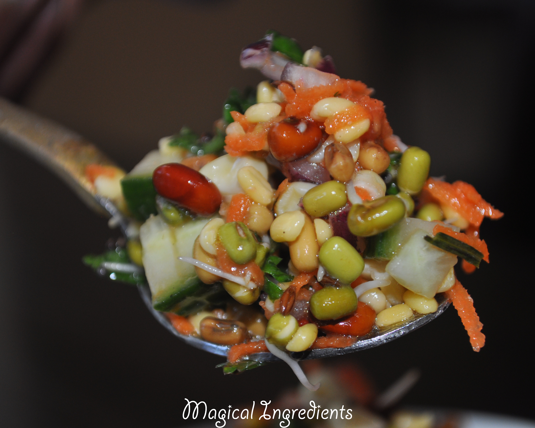 The salad looks so colourful and very healthy indeed! Beautiful combo of the sprouts with veggies to make it super delicious.