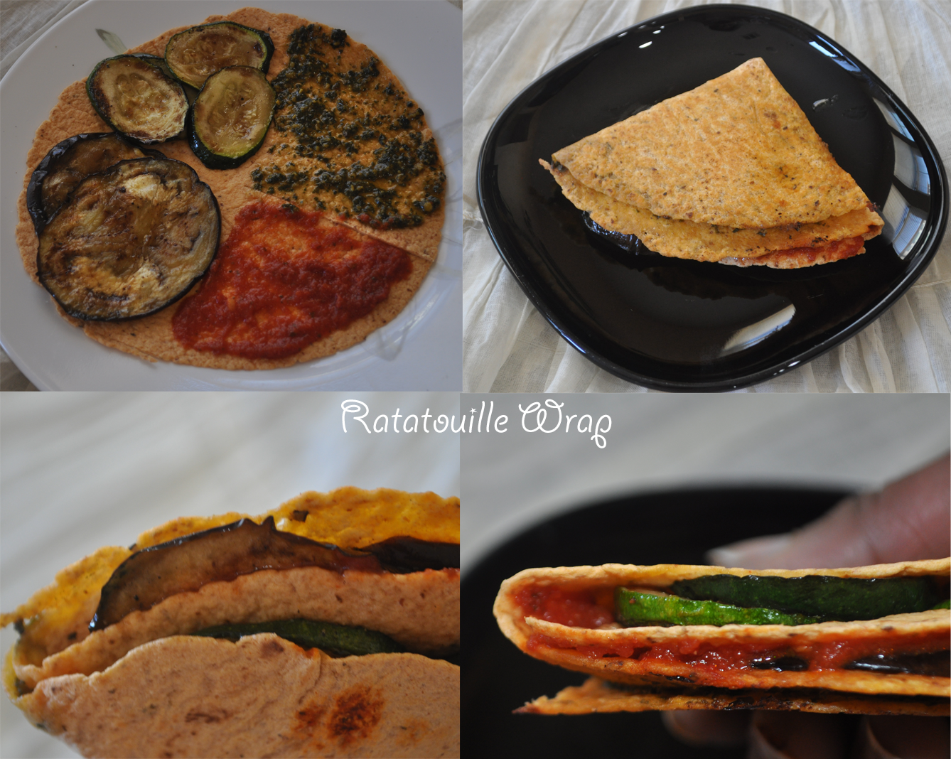 The French style Ratatouille is one of our favorite. Check the recipe of ratatouille here and try this wrap inspired by the flavors of this stew. Also this is a good one to roast the small quantities of veggies in the fridge. This wrap is light, vegan, and very flavorful.