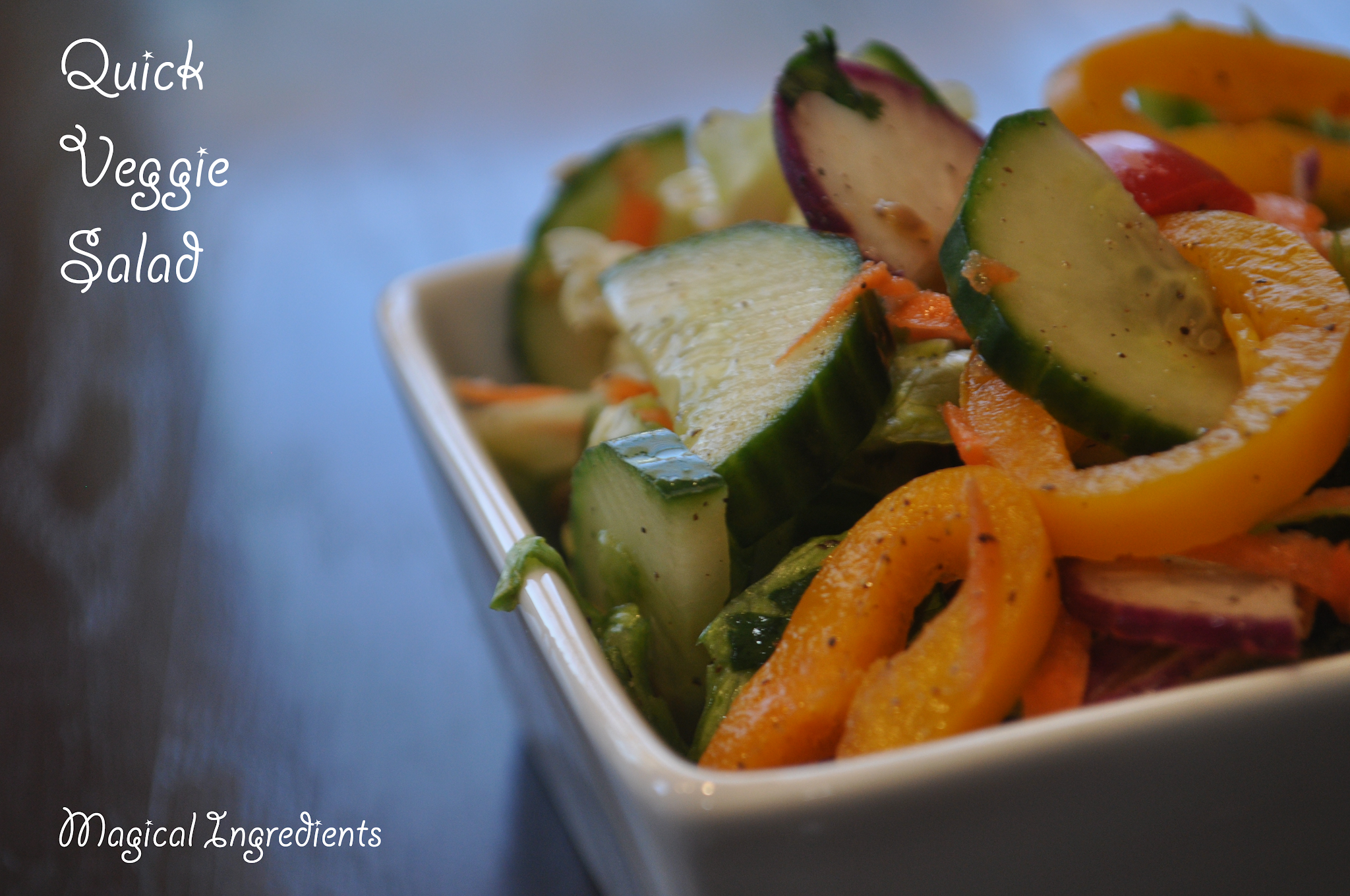 Simple is best. This is a simple, healthy, and quick salad which can be made in minutes with the veggies that you will always have in hand. This is my go to salad always. I don't make very specific dressings for salad every time. I like this kind which doesn't have any oil but at the same time gives a wonderful flavor with crunchy veggies. The lime juice brings out the flavors of the individual components.