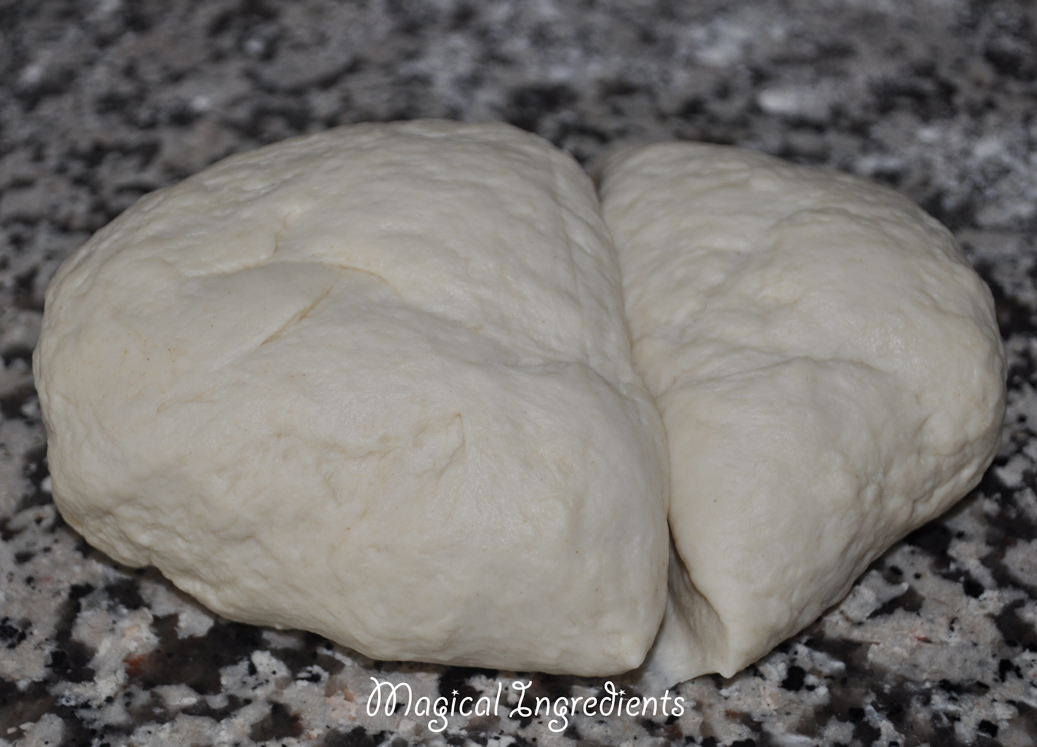 Preheat the oven to 400 degrees F. Once it is doubled, punch, knead the dough. Divide the dough into two parts - one-third and two-thirds.
