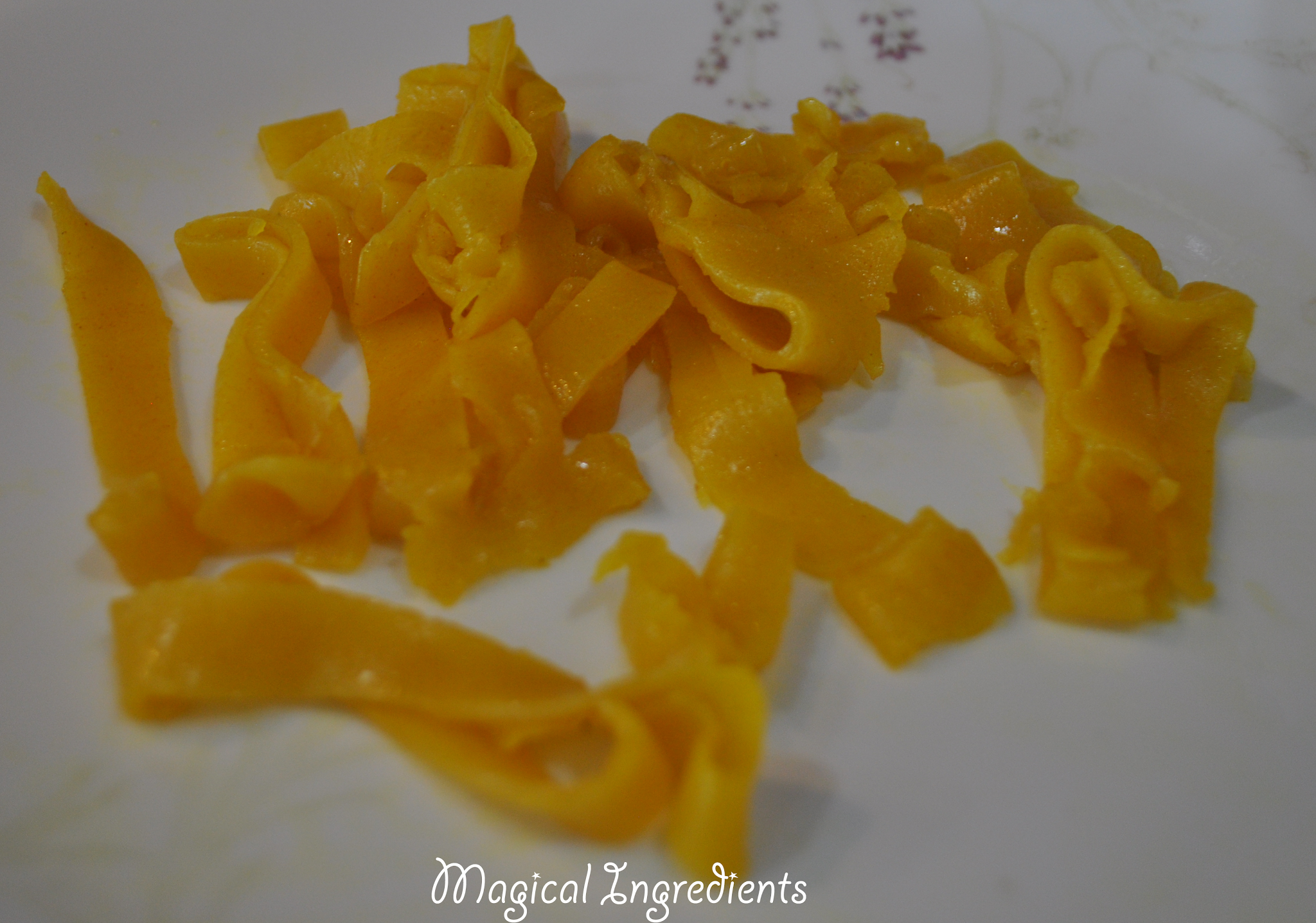 For the noodle soupy version: Fold the noodle into 1/3rd. Chop into 1/2 inch width pieces for noodles.