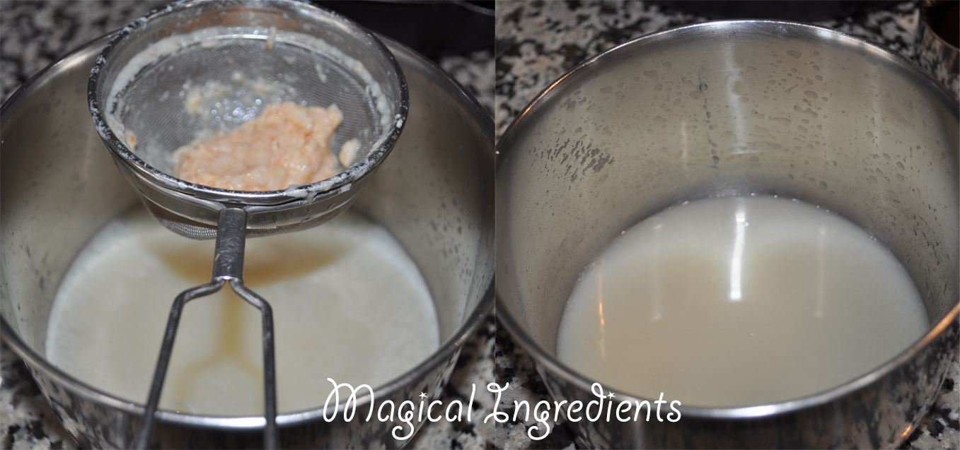 Blend the canned litchi with juice and filter. Set aside 2/3 of the filtered juice.