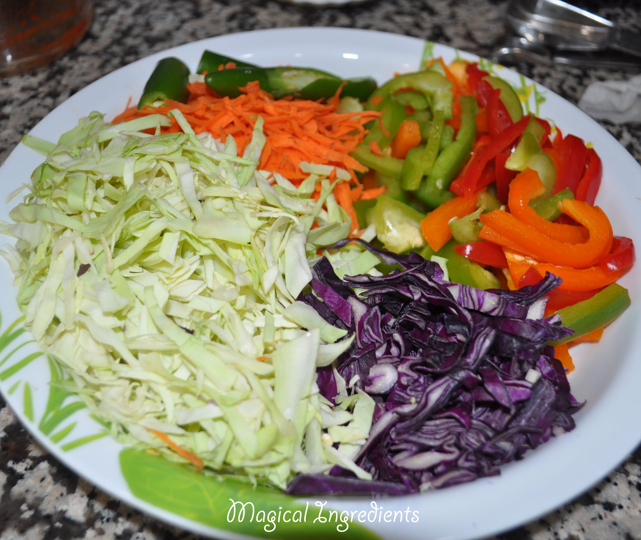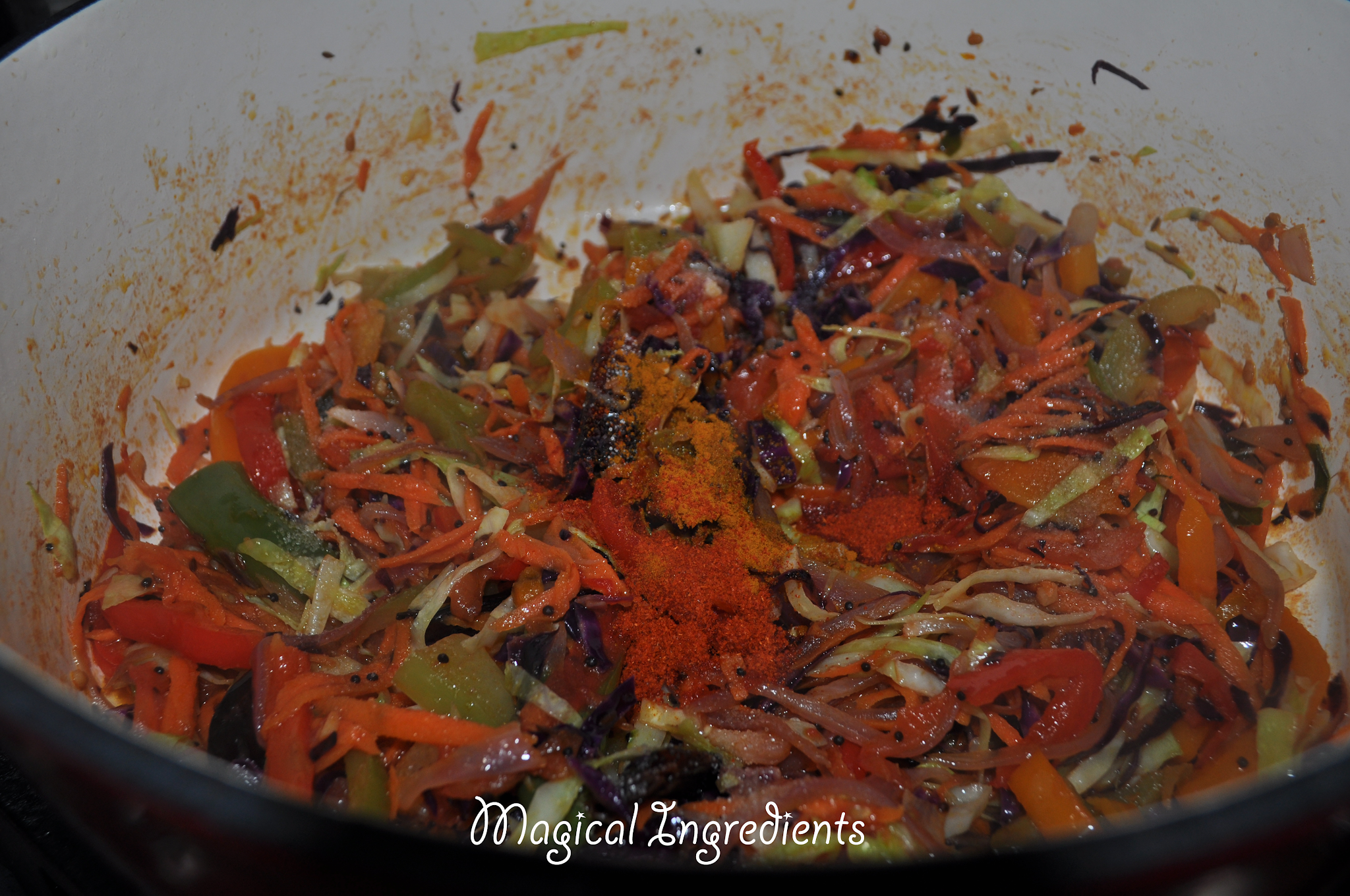 Add the shredded carrots and cabbage, Stir-fry for 2 minutes.