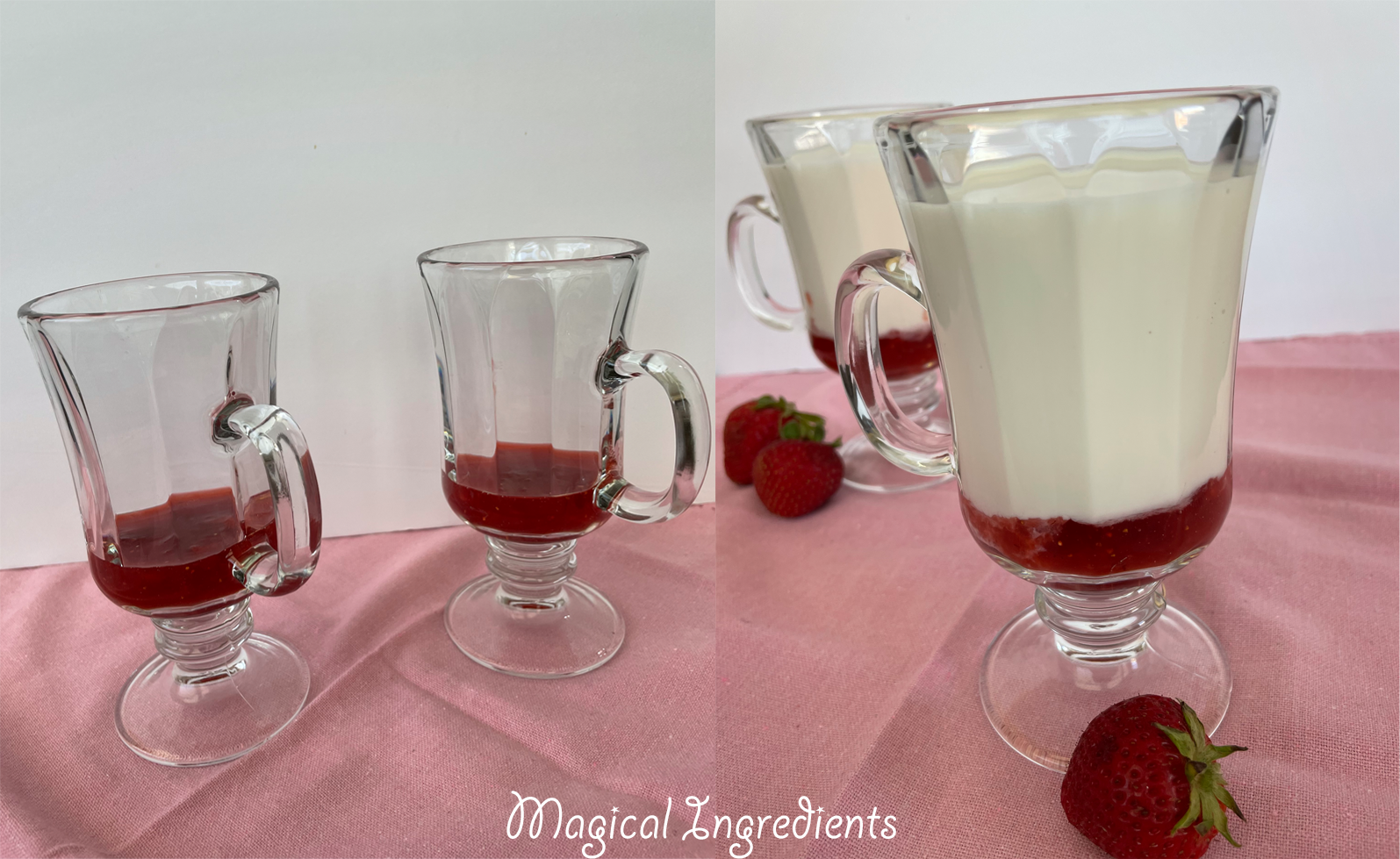 Puree 1 cup strawberries and sugar and simmer for about 5-8 minutes till you get a syrup consistency.