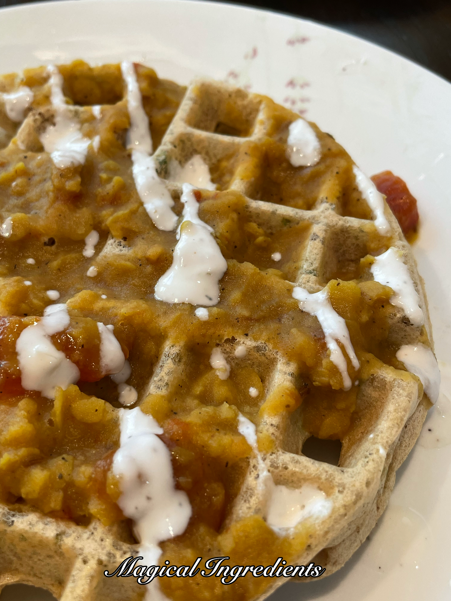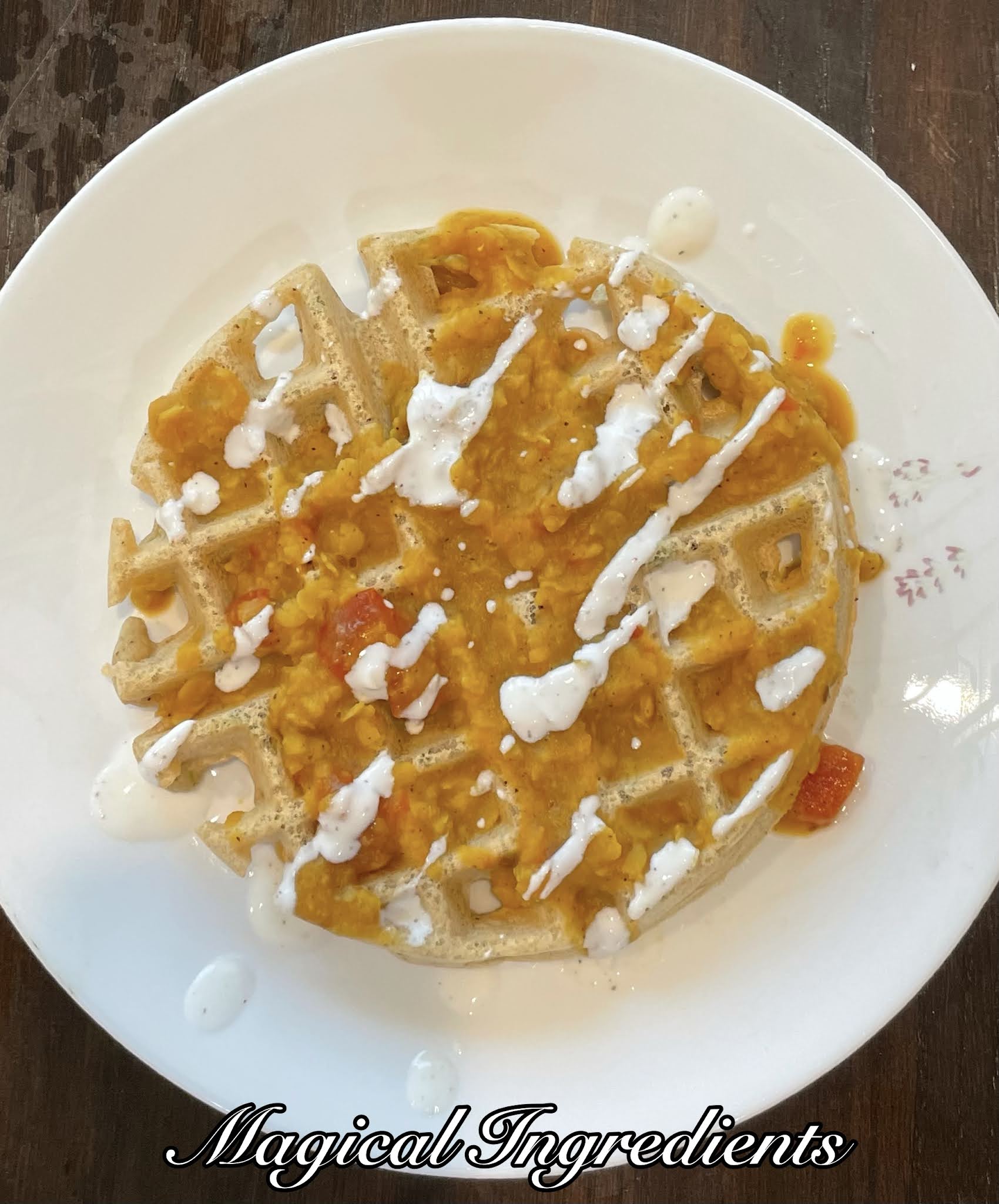 Gandana waffles are simple and tasty savory waffles made with Afghani leeks. They can be served with yellow lentil stew and or yogurt. They make absolutely comforting brunch or dinner. With chive flavor, these waffles are great with soups too.