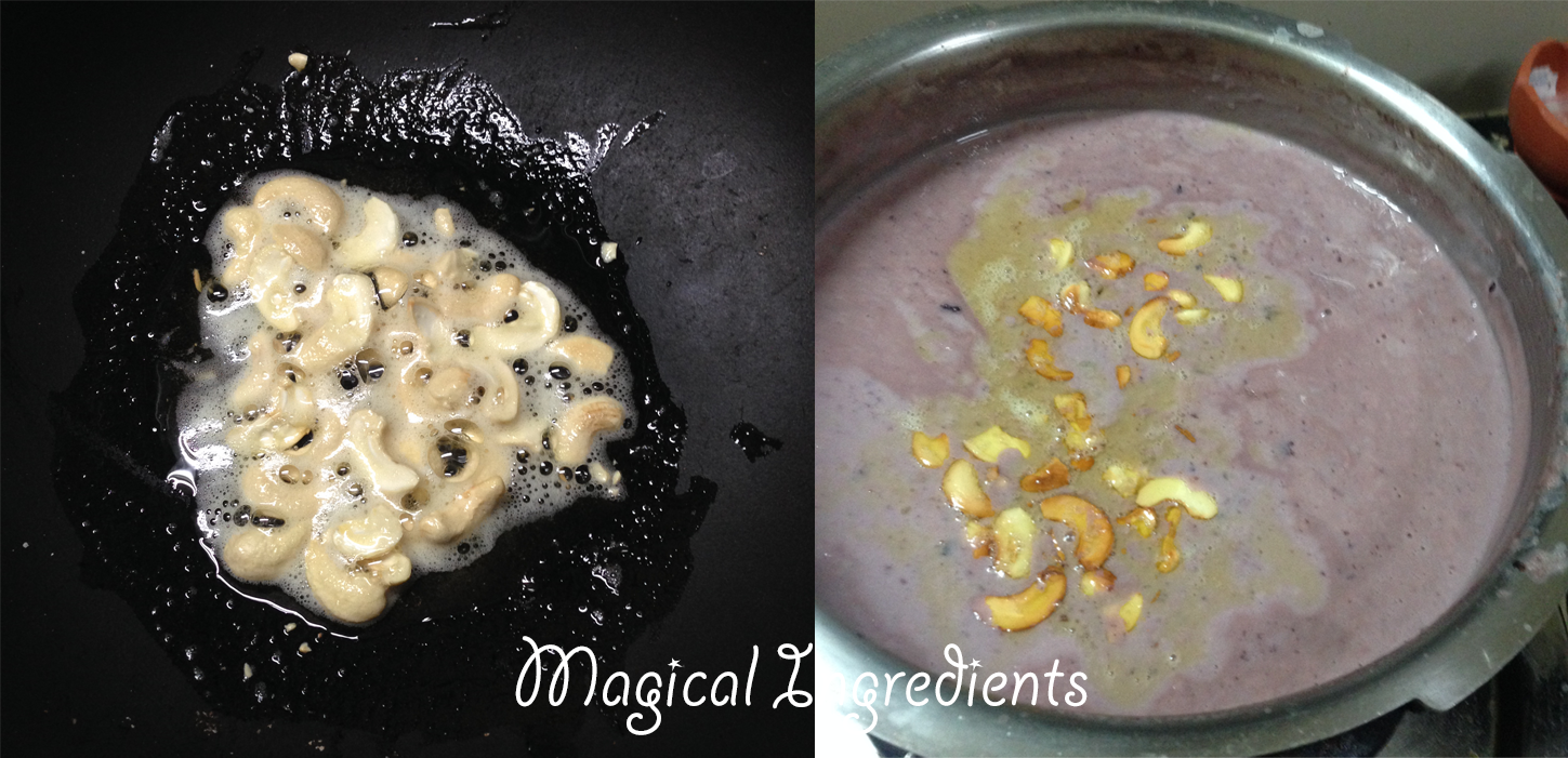 Heat ghee in a pan and fry the cashews golden brown and add it to the payasam/pudding.