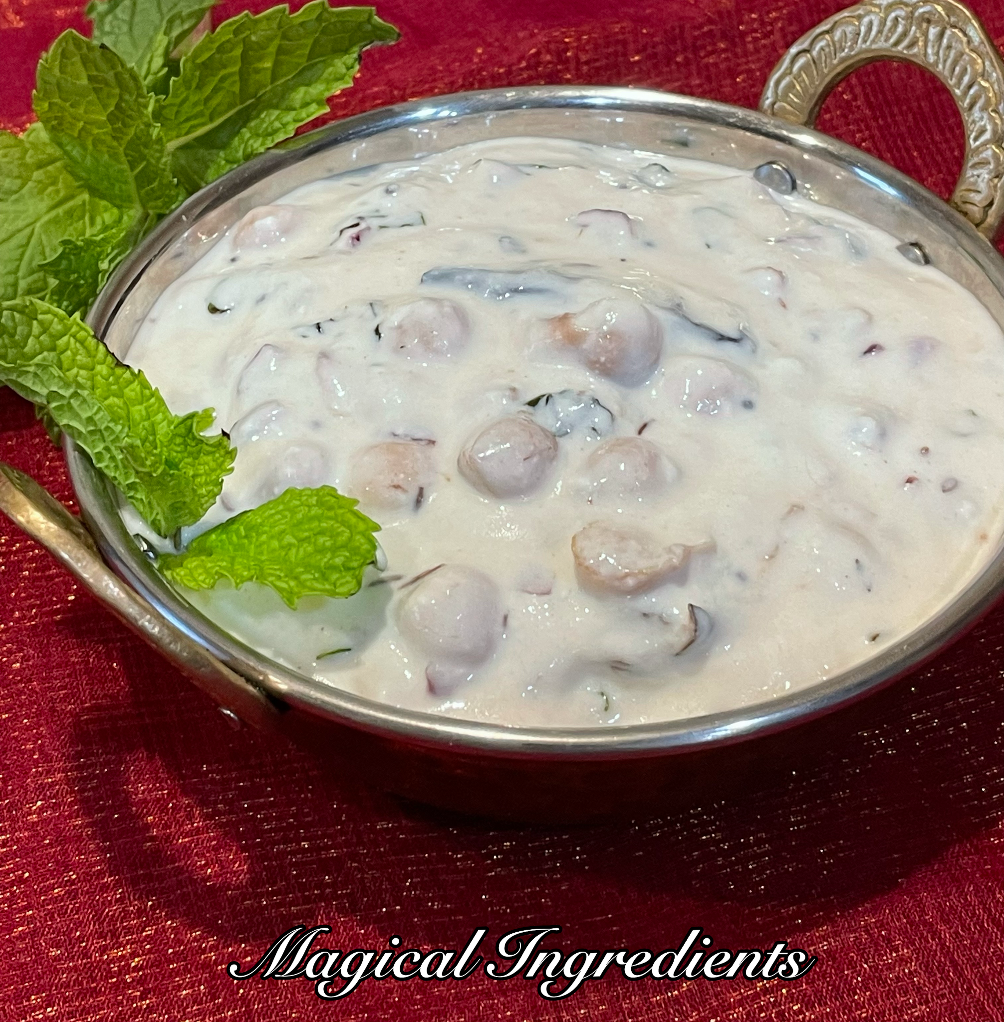 This is a simple, comforting, and protein rich raita. The mint adds to the freshness to this raita and when combined with cooking yogurt and scrumptious beans, this is the satisfying side to any meal. This can be served with any kind of rice or with roti. Also, during the summer, this is one of our best choice to have as a chilled soup.