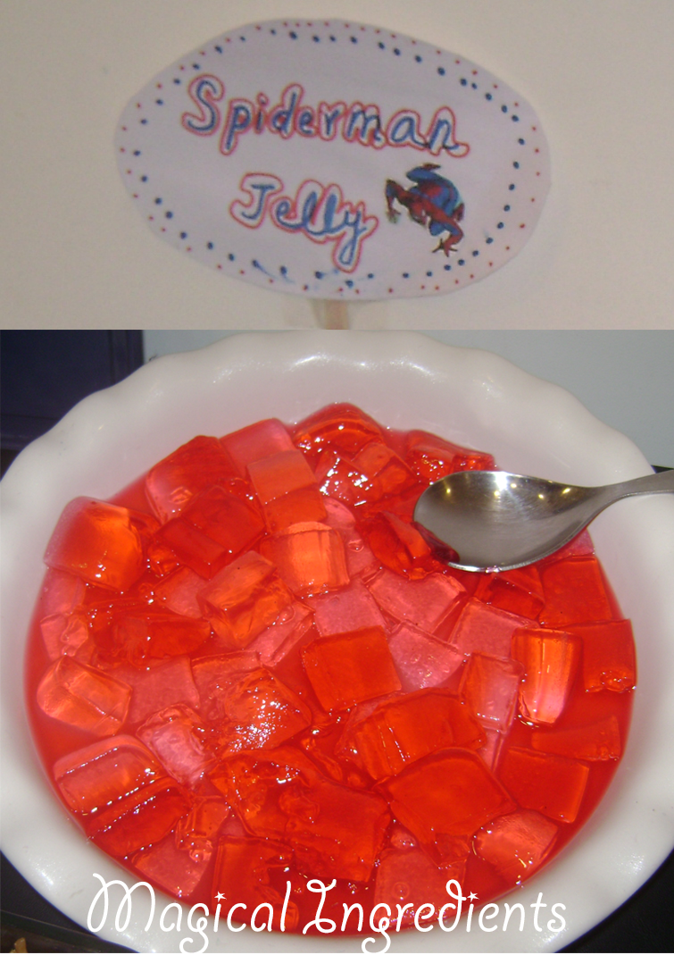 Next, a party should have some sweet fun elements for the kids. We saw some jelly in stores and used them right away as 'Spidey Treats'.