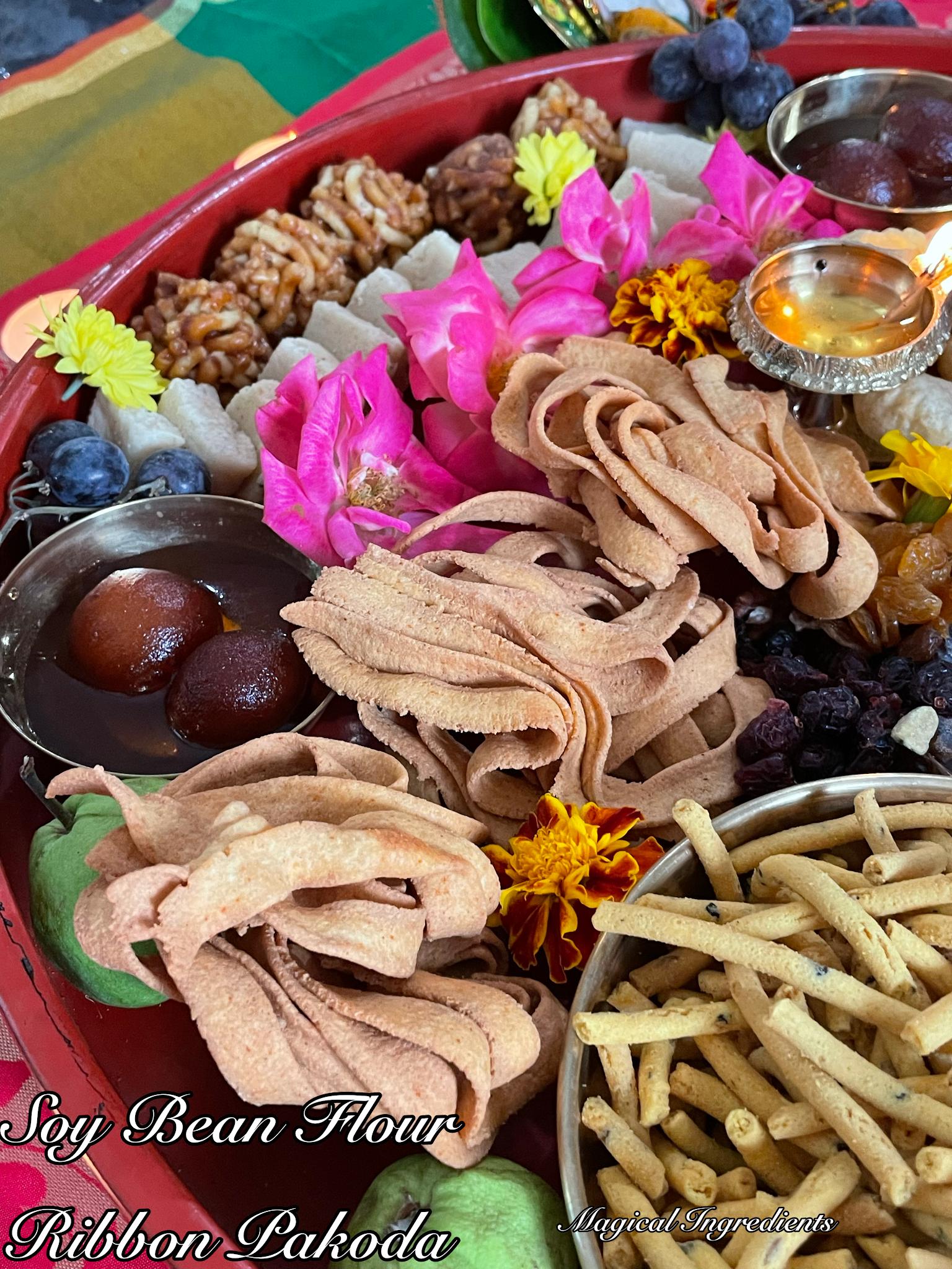 This simple ribbon pakoda is made with soy flour instead of besan which is the traditional way. Check here for the recipe.