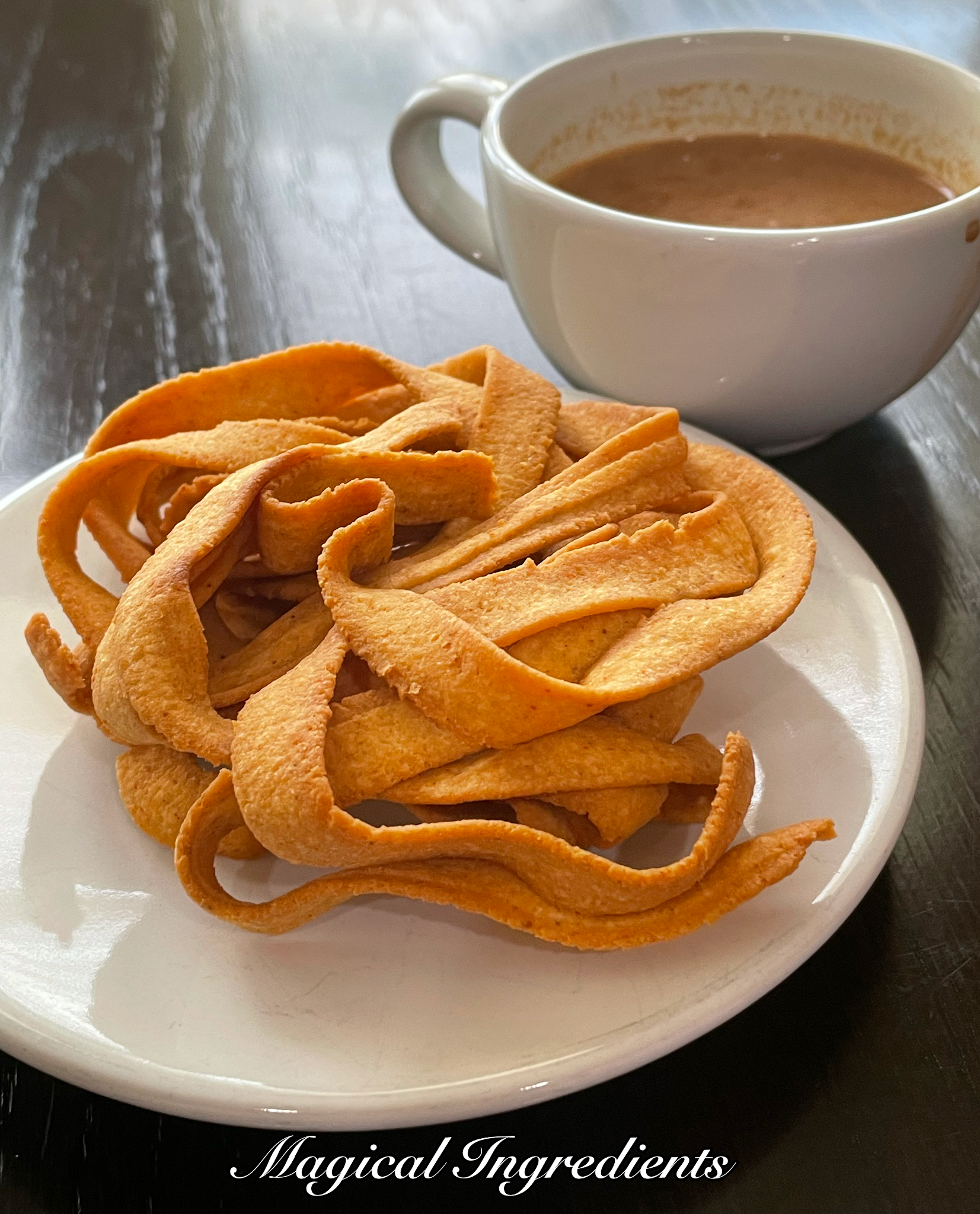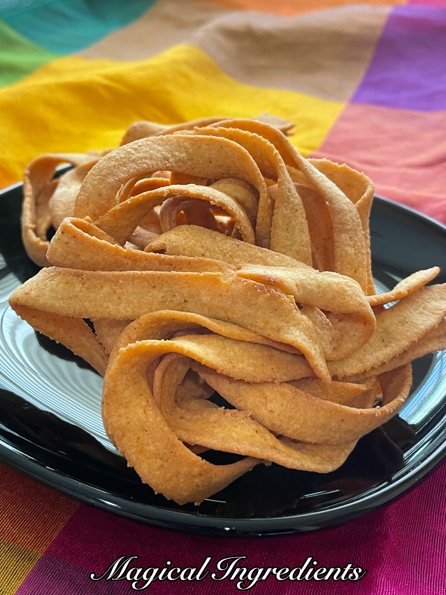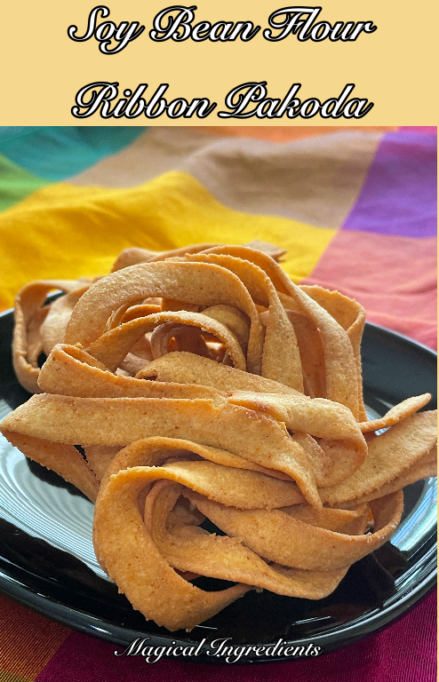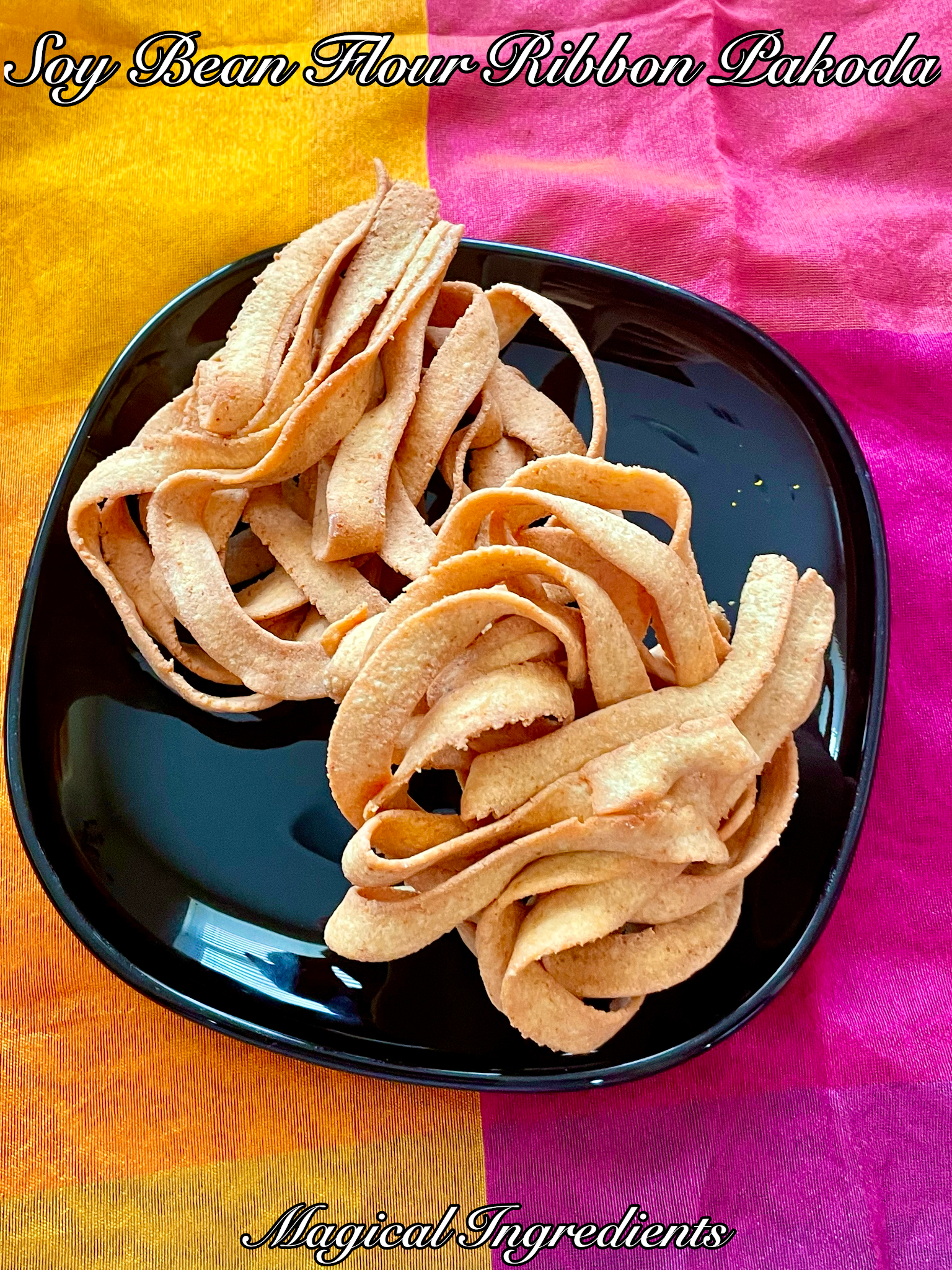 This is a tasty deep-fried ribbon shaped snack made with soy flour. Ribbon pakodas are made during festival season and can be enjoyed any day too. Traditionally, they arem ade with besan and here is a soy bean flour based ribbon pakoda which are also crispy and melt in the mouth kind of snack.