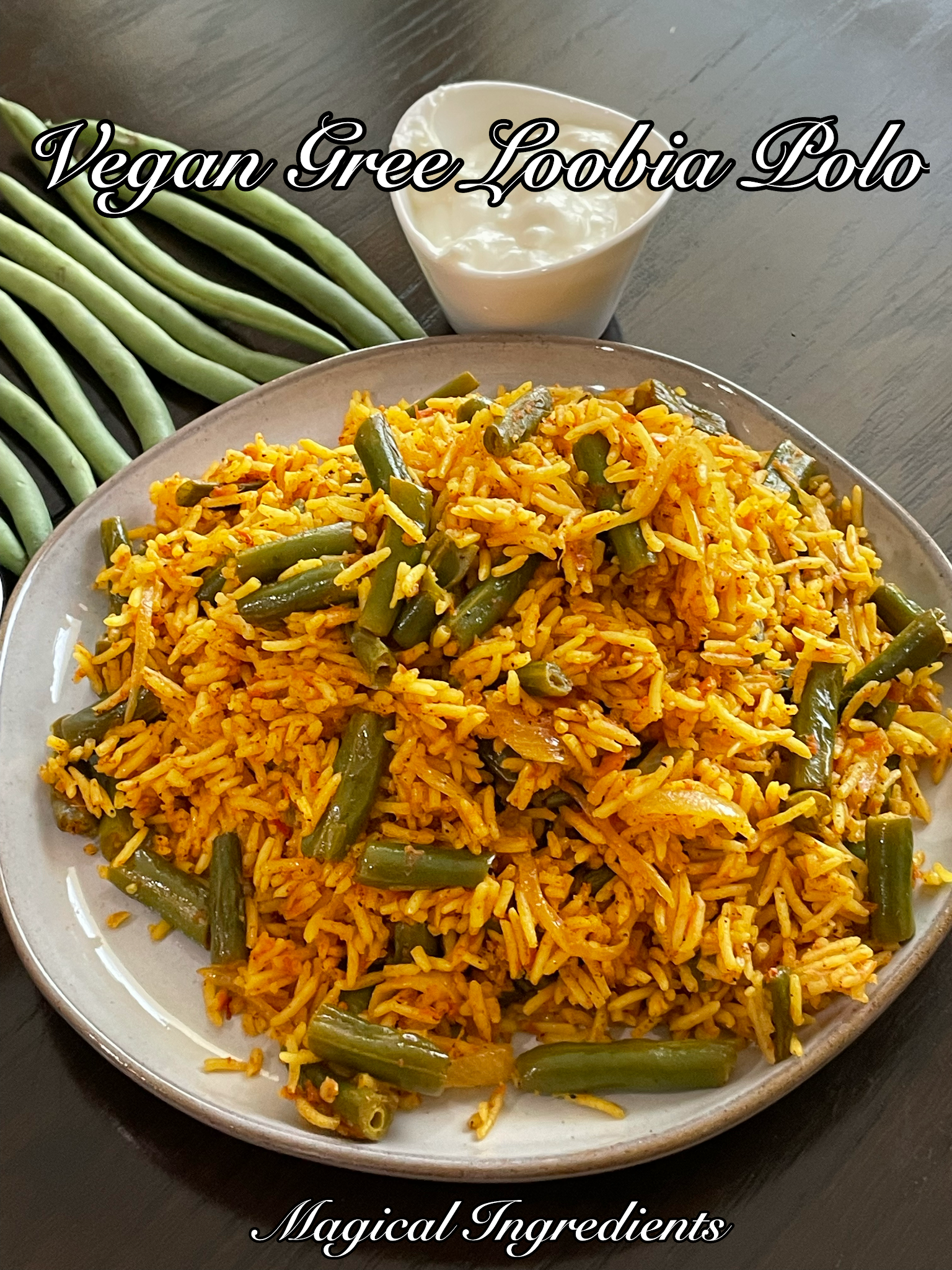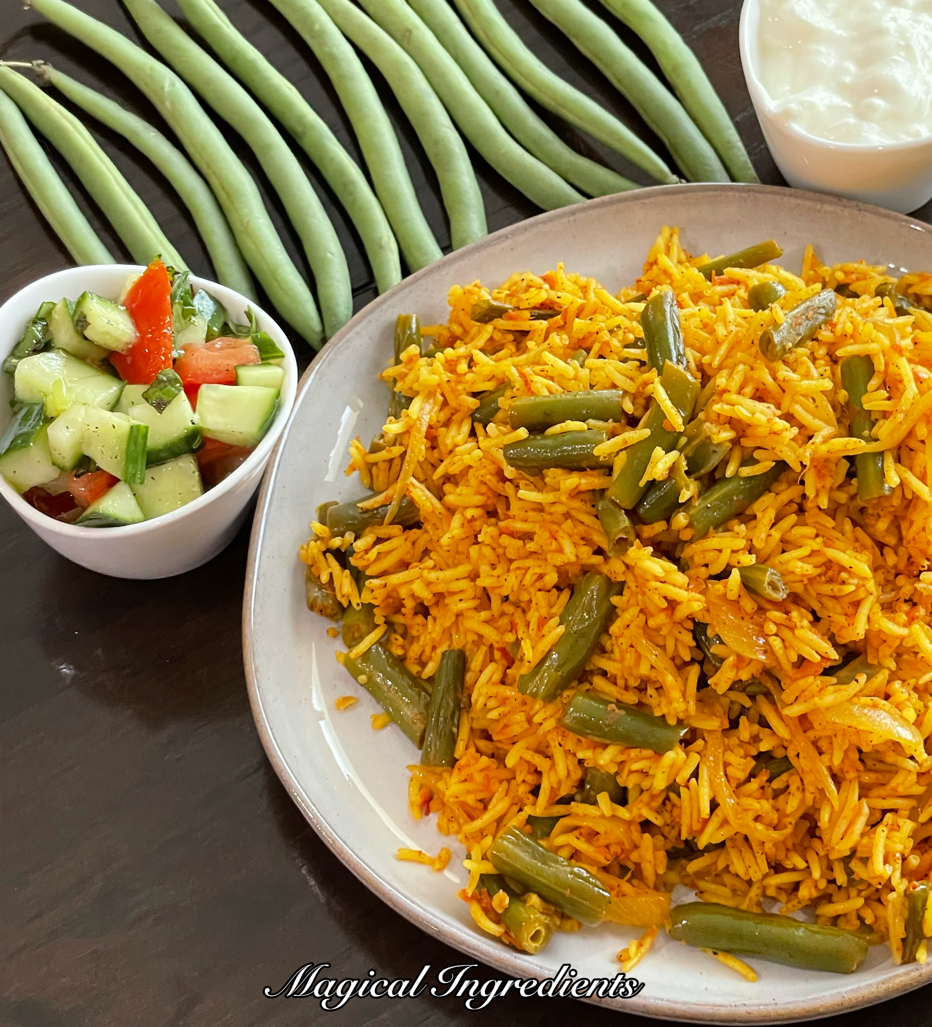 This is a simple and comforting rice made with frsh green beans. It is an easy one-pot meal, fit for any day. The spices and the fresh beans make a delicious and nutritious meal. This recipe is vegan. The original recipe uses chicken and I have skipped it. Vegan version is absolutely delicious.
