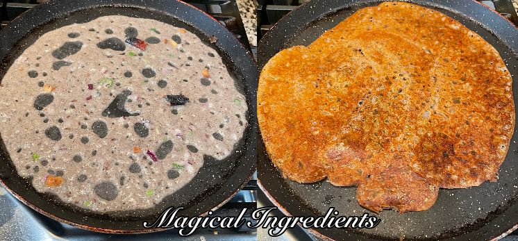Buckwheat flour is used in this recipe to make a quick dosa. In my recipe, instead of adding rice flour alone, just like in any instant dosa, I have added soy flour to increase the protein content. Because of buckwheat and soy flour, this will require more water to make instant batter than any other instant dosa. The only thing to keep in mind is that these dosas should be served hot. They are best in this way. The leftover batter stays in the fridge for a couple of days. Just whisk well and make dosa.