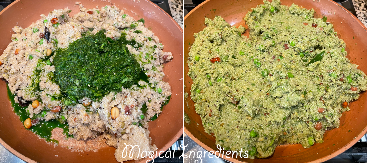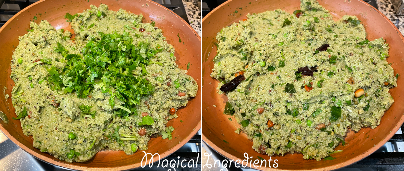 Add the chopped cilantro, mix, cover and let it cool for 15 minutes. In this time the millets would swell up too.