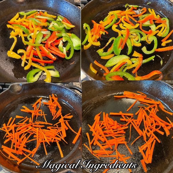 Heat a pan with half tablespoon oil and saute the bell peppers on high heat for 2 minutes. Set aside and saute the carrots for 2 minutes. Set it aside.